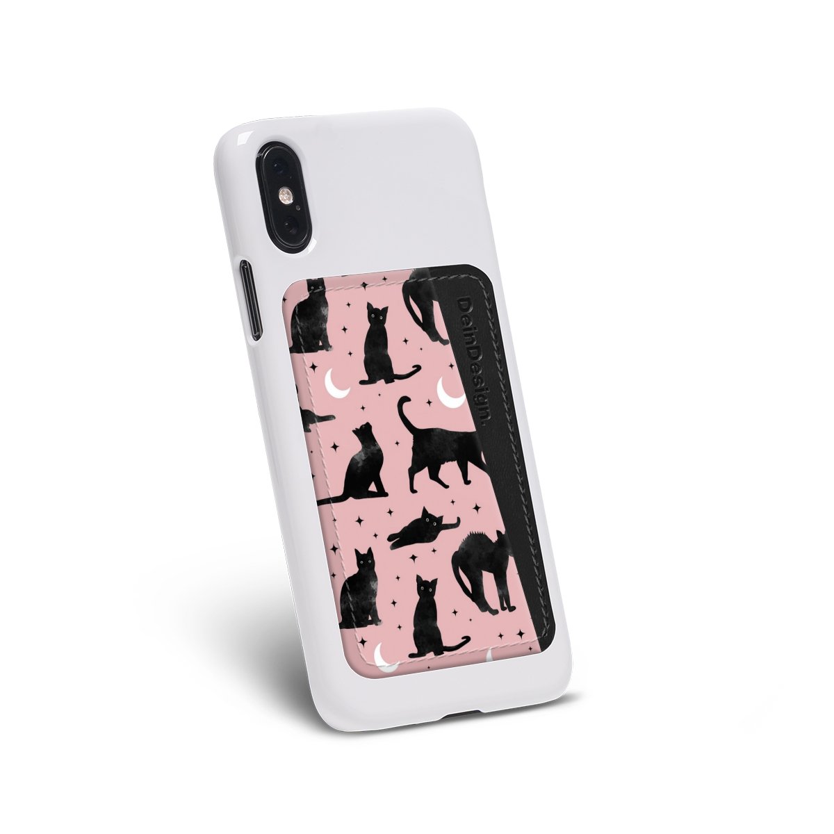 We advise to clean your phone case with a soft cloth and a mild detergent first. On the back of the card holder you will find an adhesive strip. Pull off the protective film and press the card holder firmly against the phone case – that’s it!
