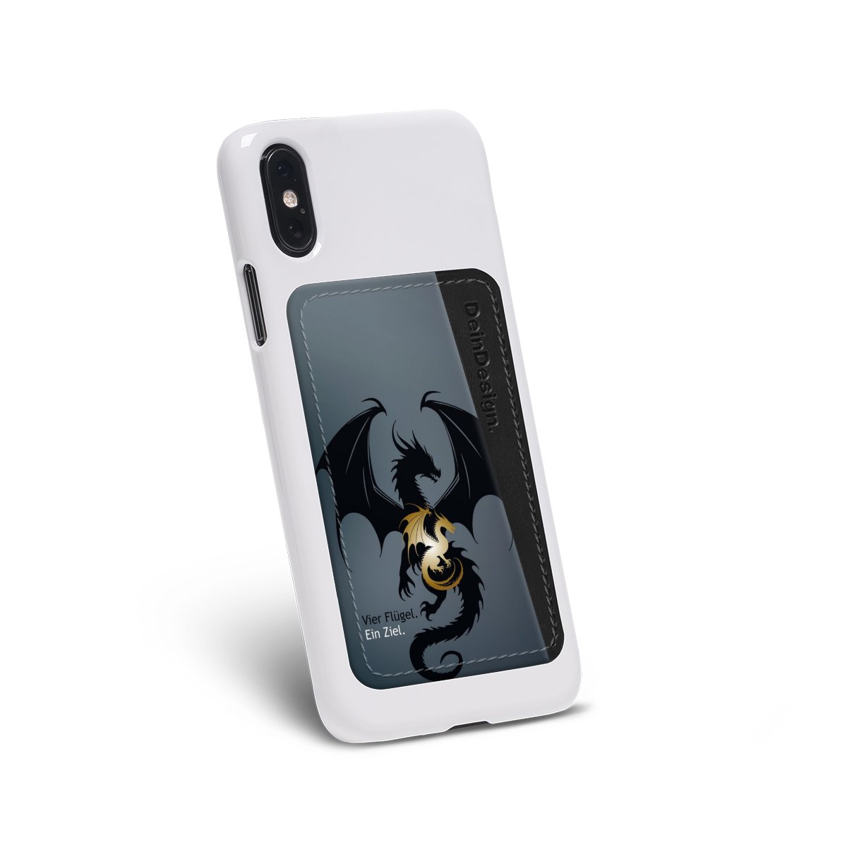 We advise to clean your phone case with a soft cloth and a mild detergent first. On the back of the card holder you will find an adhesive strip. Pull off the protective film and press the card holder firmly against the phone case – that’s it!
