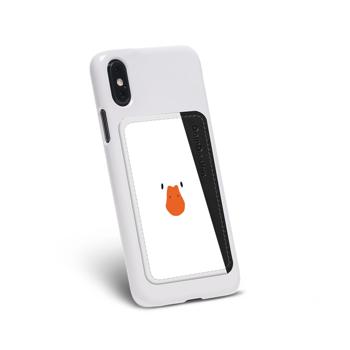 We advise to clean your phone case with a soft cloth and a mild detergent first. On the back of the card holder you will find an adhesive strip. Pull off the protective film and press the card holder firmly against the phone case – that’s it!