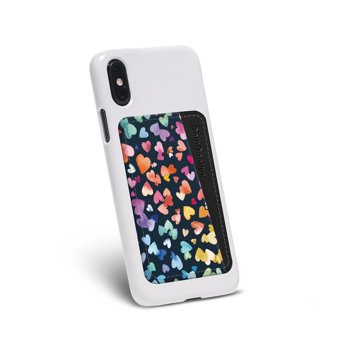 We advise to clean your phone case with a soft cloth and a mild detergent first. On the back of the card holder you will find an adhesive strip. Pull off the protective film and press the card holder firmly against the phone case – that’s it!