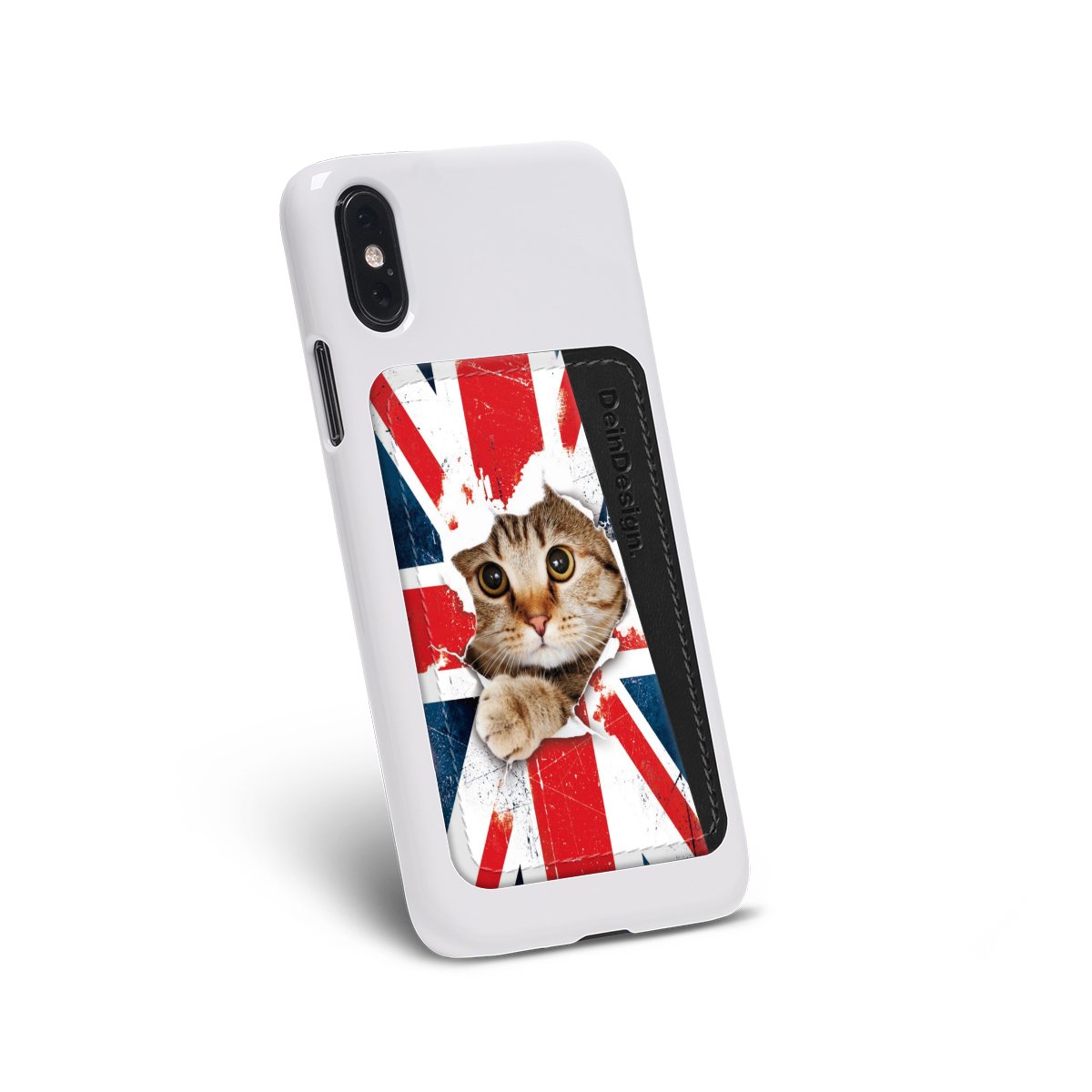 We advise to clean your phone case with a soft cloth and a mild detergent first. On the back of the card holder you will find an adhesive strip. Pull off the protective film and press the card holder firmly against the phone case – that’s it!