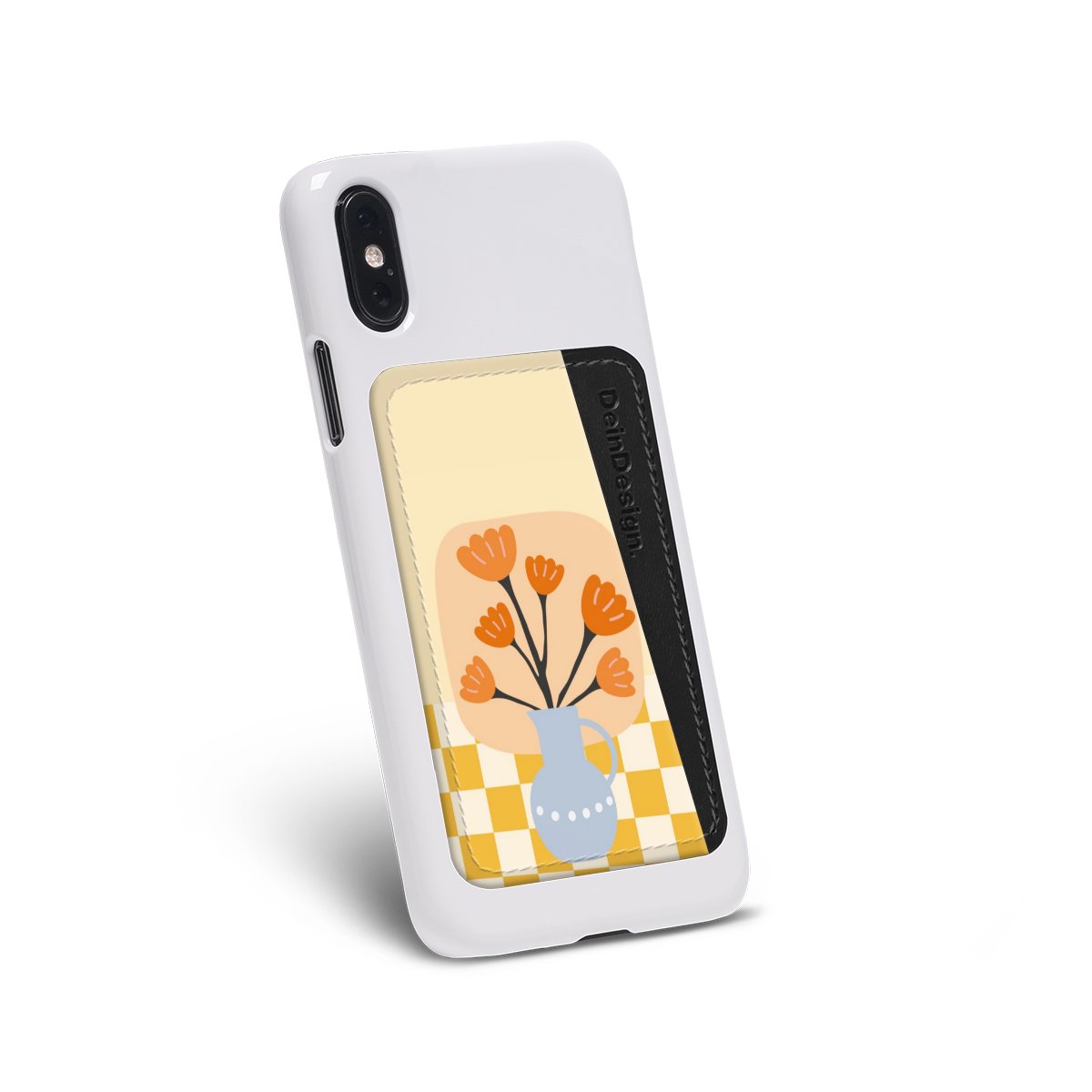 We advise to clean your phone case with a soft cloth and a mild detergent first. On the back of the card holder you will find an adhesive strip. Pull off the protective film and press the card holder firmly against the phone case – that’s it!