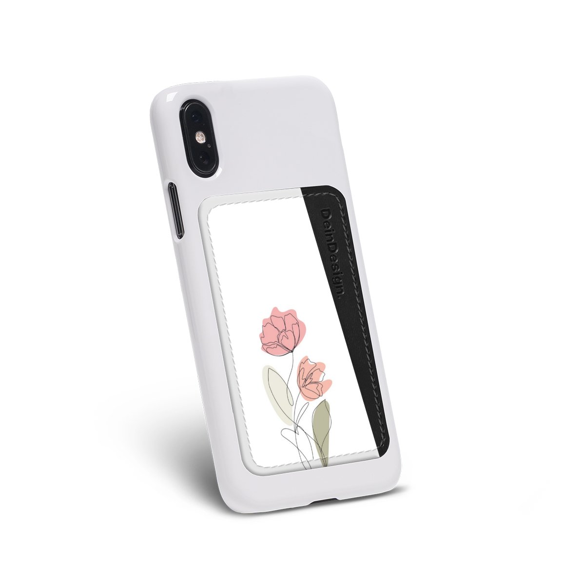 We advise to clean your phone case with a soft cloth and a mild detergent first. On the back of the card holder you will find an adhesive strip. Pull off the protective film and press the card holder firmly against the phone case – that’s it!