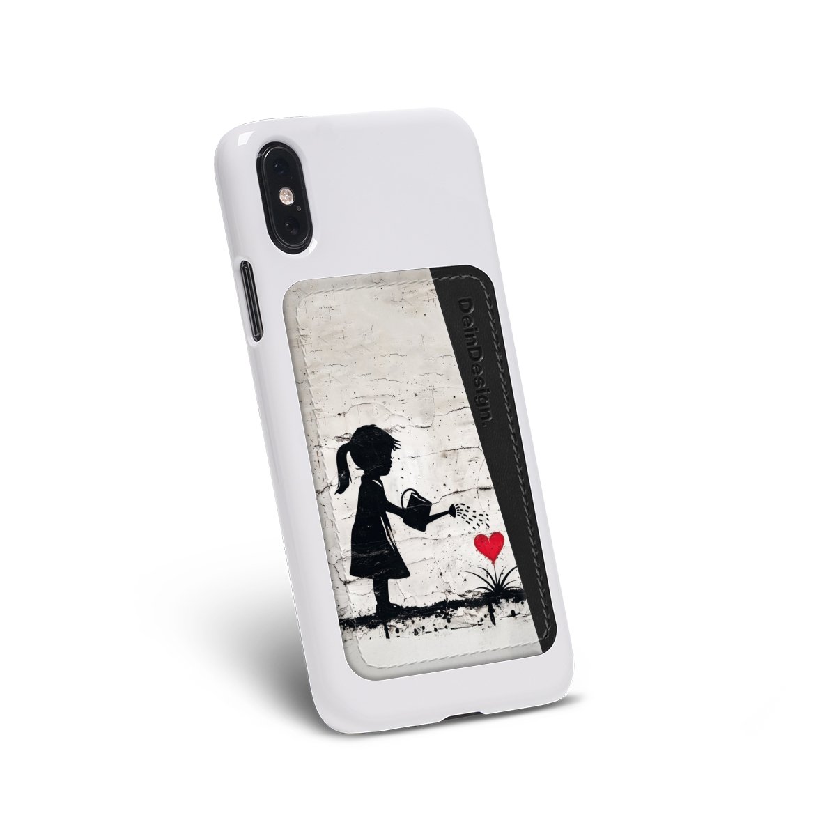 We advise to clean your phone case with a soft cloth and a mild detergent first. On the back of the card holder you will find an adhesive strip. Pull off the protective film and press the card holder firmly against the phone case – that’s it!