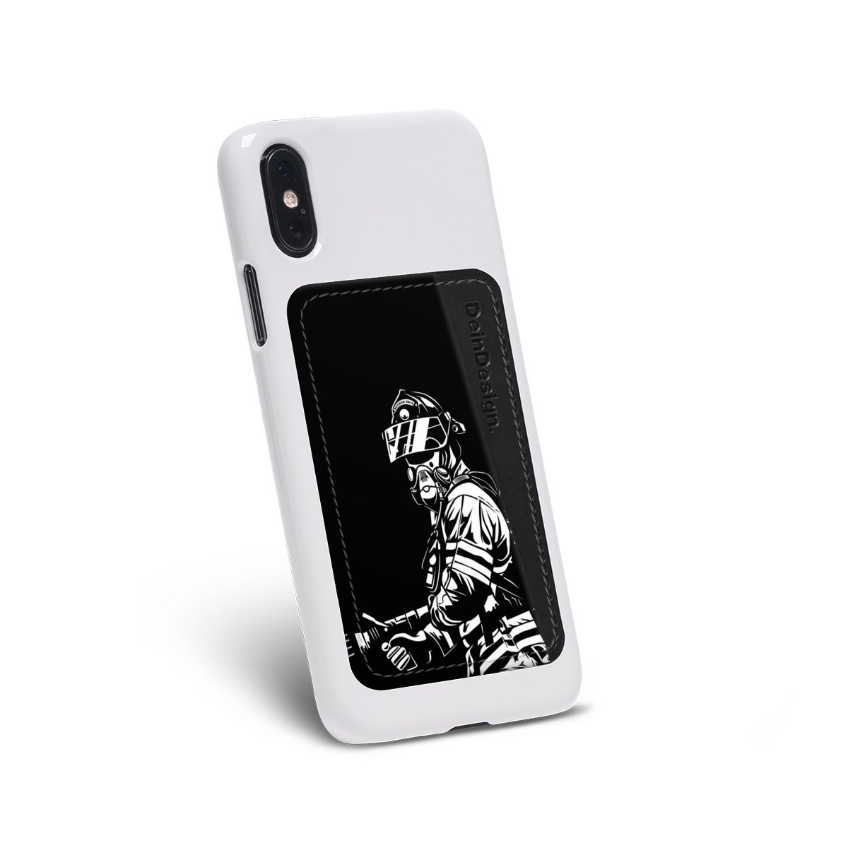 We advise to clean your phone case with a soft cloth and a mild detergent first. On the back of the card holder you will find an adhesive strip. Pull off the protective film and press the card holder firmly against the phone case – that’s it!