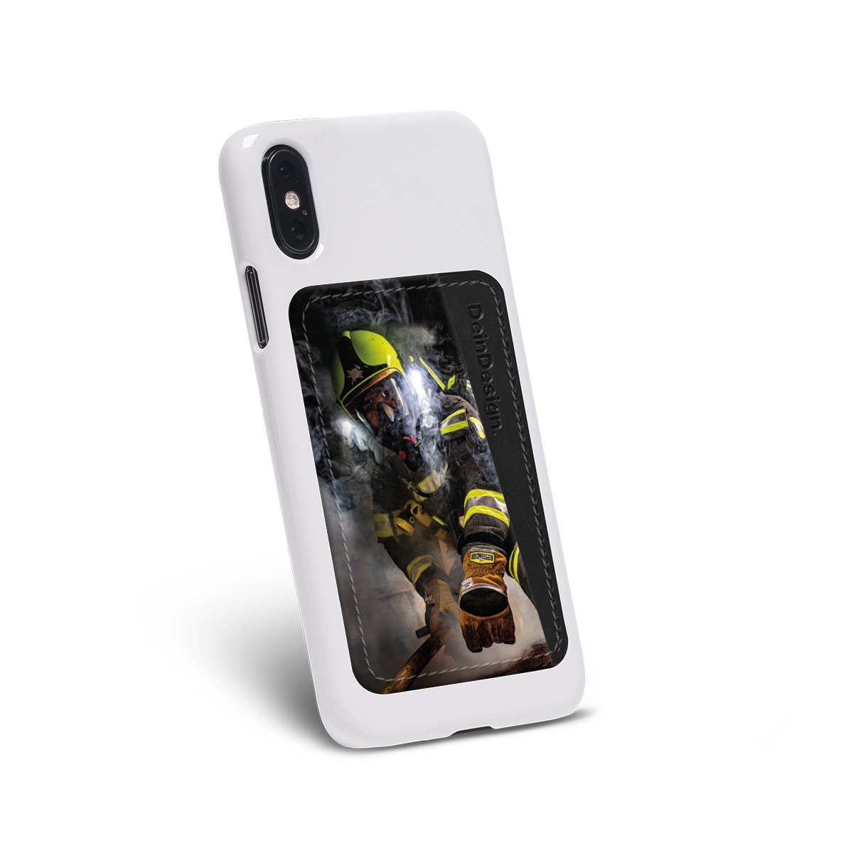 We advise to clean your phone case with a soft cloth and a mild detergent first. On the back of the card holder you will find an adhesive strip. Pull off the protective film and press the card holder firmly against the phone case – that’s it!