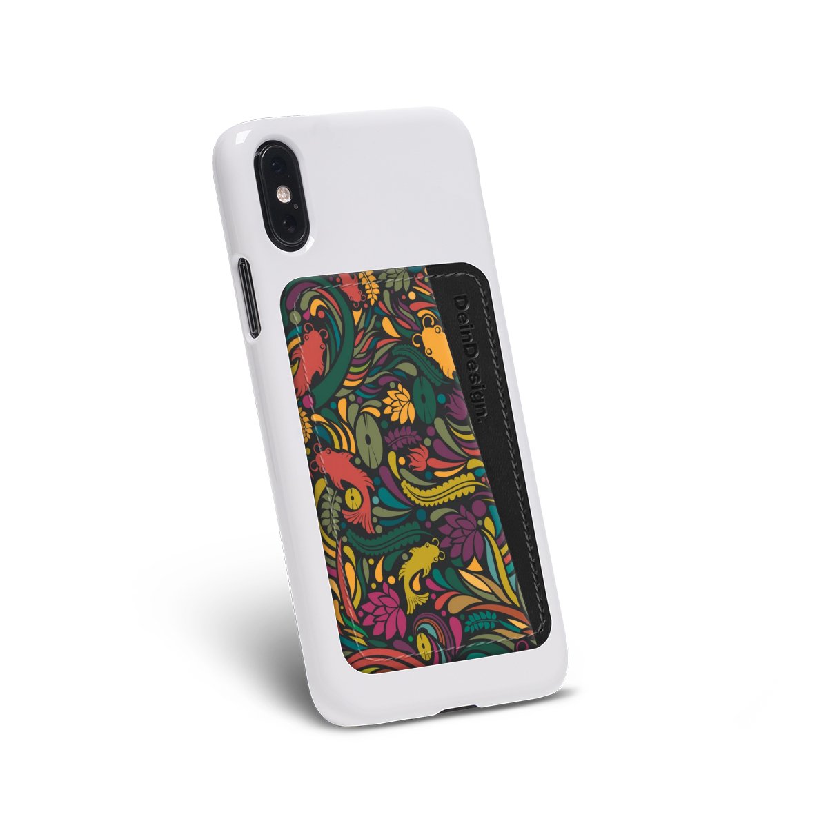 The printing area of the card holder extends from the frontside to the edge. This means there is room for your very own personal design – for example matching your phone case or customizing it with your favourite photos. We print the design for you precisely and in intense colours as soon as your order is completed.