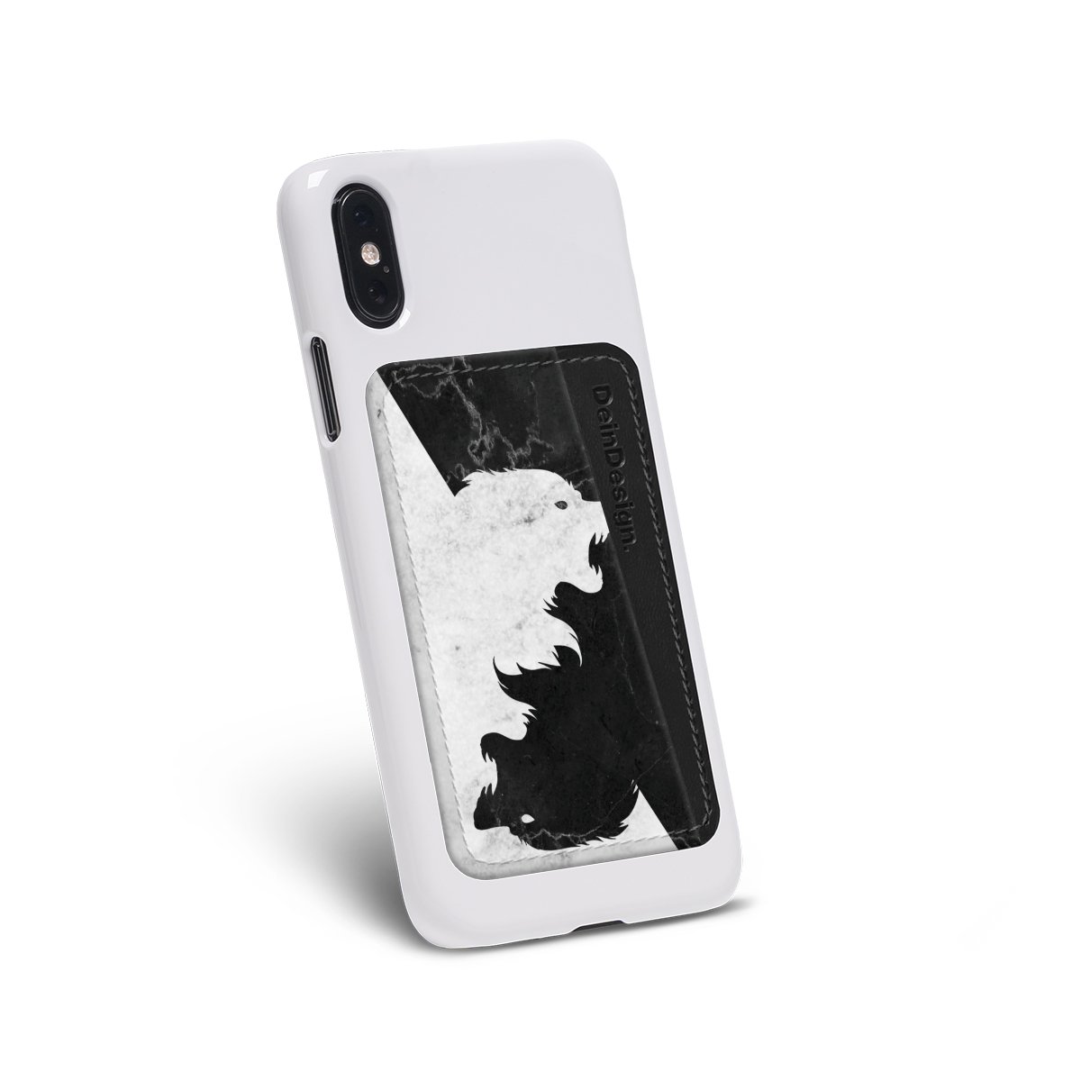 We advise to clean your phone case with a soft cloth and a mild detergent first. On the back of the card holder you will find an adhesive strip. Pull off the protective film and press the card holder firmly against the phone case – that’s it!