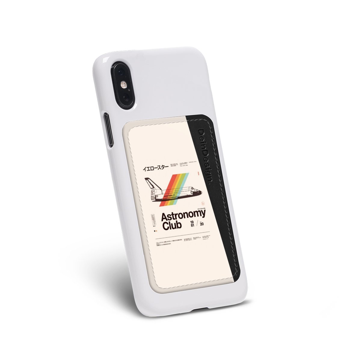 We advise to clean your phone case with a soft cloth and a mild detergent first. On the back of the card holder you will find an adhesive strip. Pull off the protective film and press the card holder firmly against the phone case – that’s it!