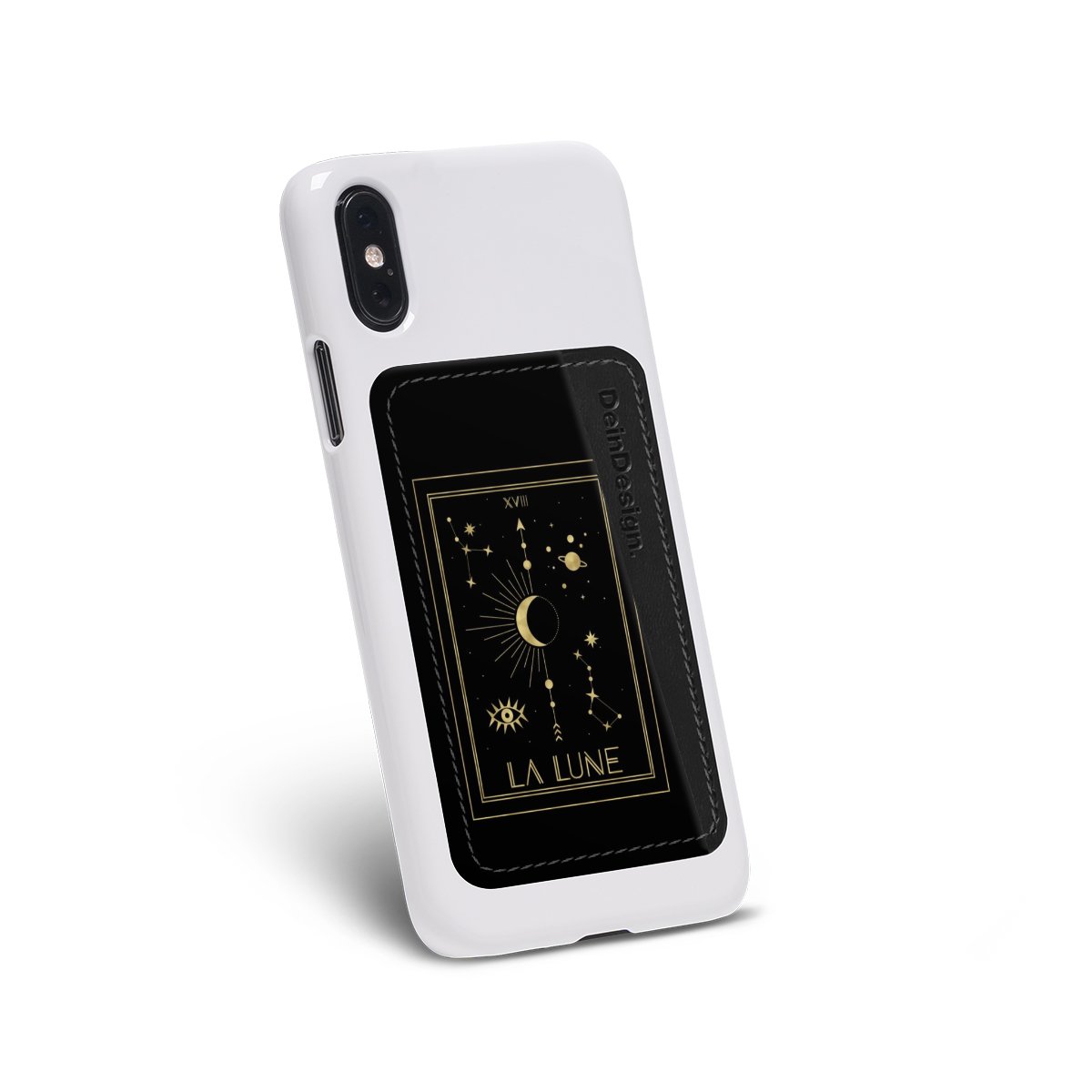 We advise to clean your phone case with a soft cloth and a mild detergent first. On the back of the card holder you will find an adhesive strip. Pull off the protective film and press the card holder firmly against the phone case – that’s it!