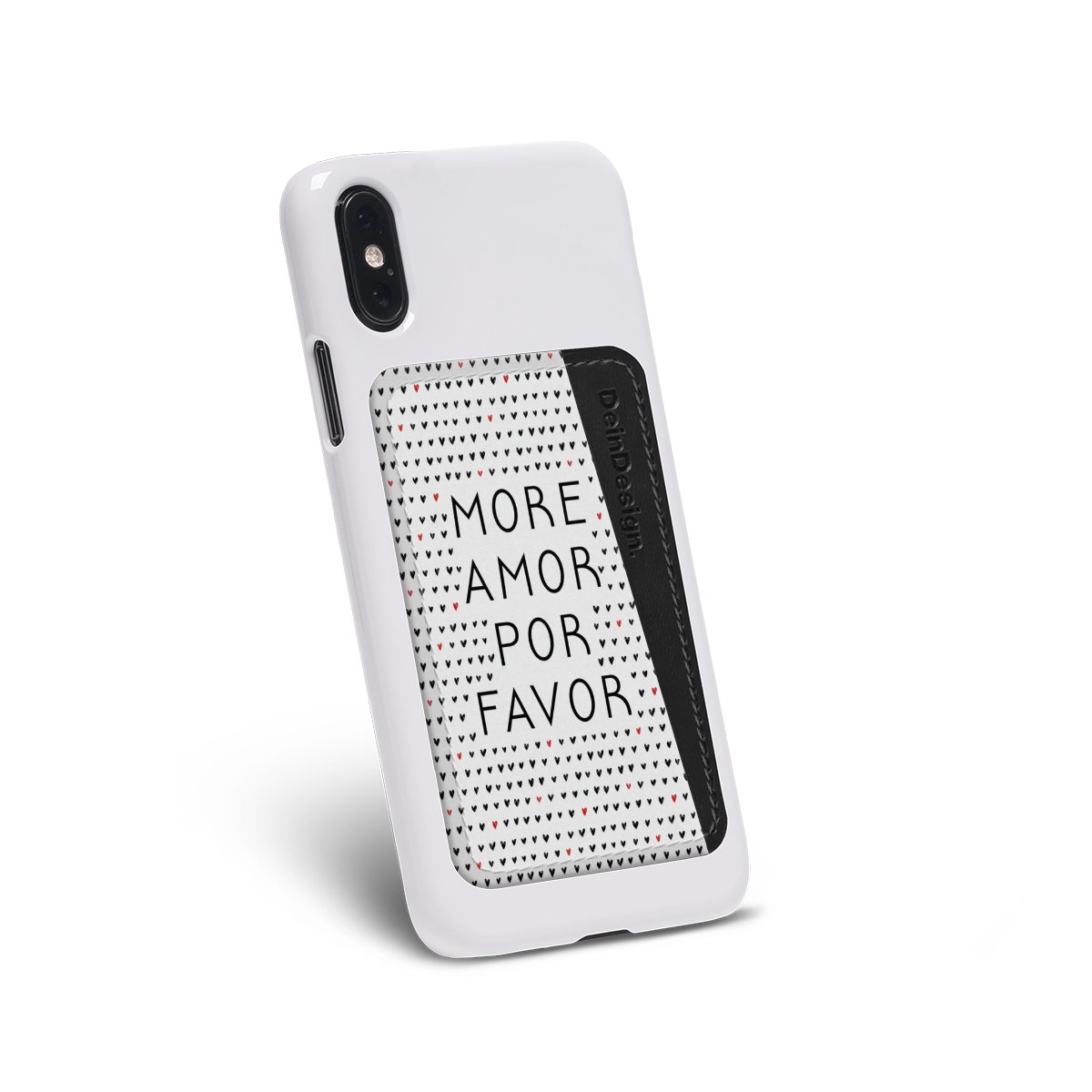 We advise to clean your phone case with a soft cloth and a mild detergent first. On the back of the card holder you will find an adhesive strip. Pull off the protective film and press the card holder firmly against the phone case – that’s it!