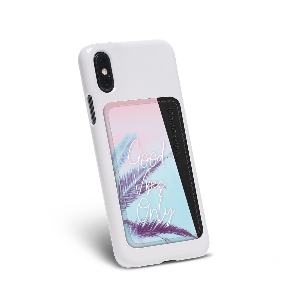 The printing area of the card holder extends from the frontside to the edge. This means there is room for your very own personal design – for example matching your phone case or customizing it with your favourite photos. We print the design for you precisely and in intense colours as soon as your order is completed.