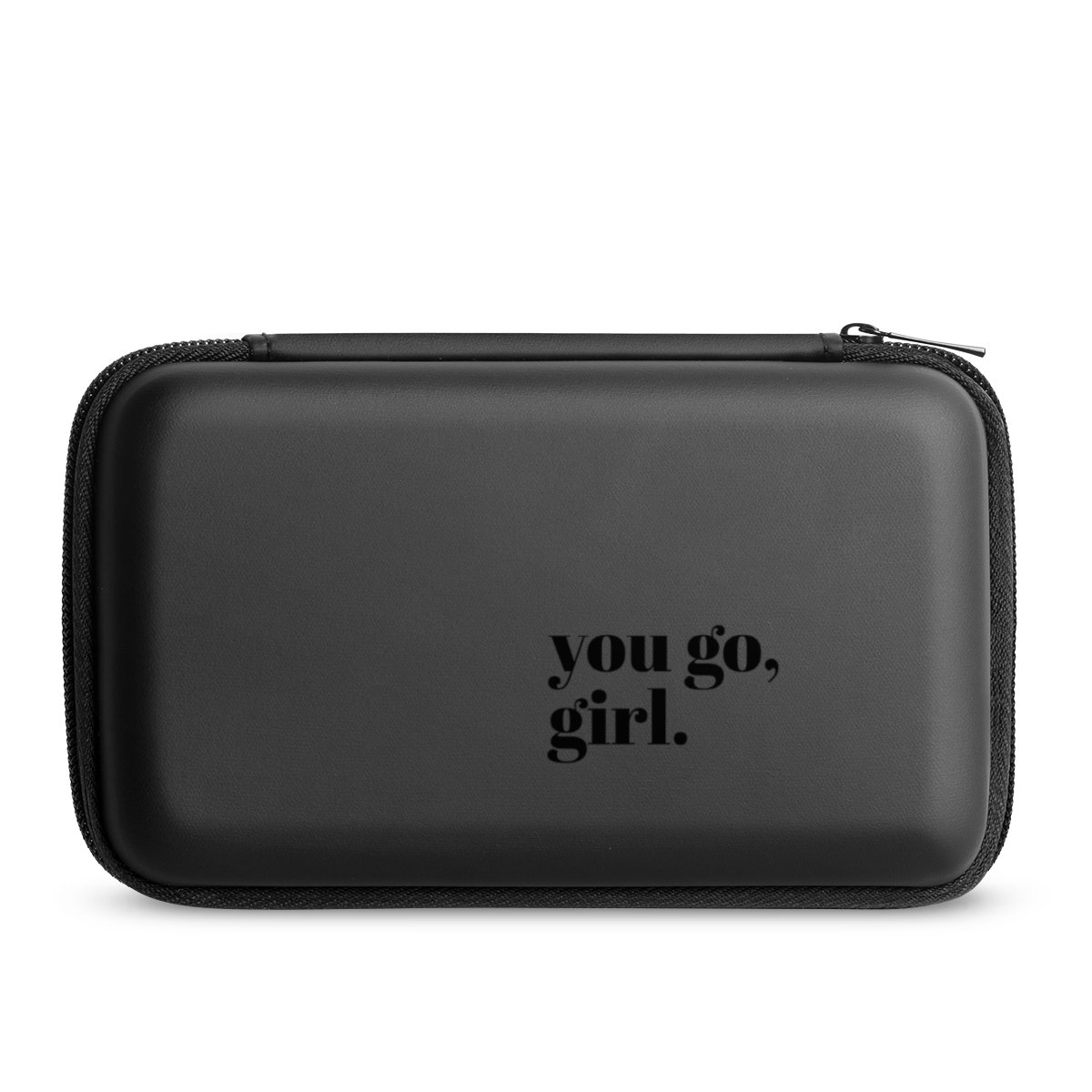 Fishing around for the powerbank in your backpack between crumbs is a thing of the past - with the practical organizer you always have all your technical accessories at hand. Inside there are two sewn-in nets where you can safely store utensils of different sizes and shapes. Travel charger? Fits. Nintendo 3DS and 2DS XL? Fits. Charging cable? Fits. And best of all: You can customize the front with your own photos, sayings or a design from our shop.
