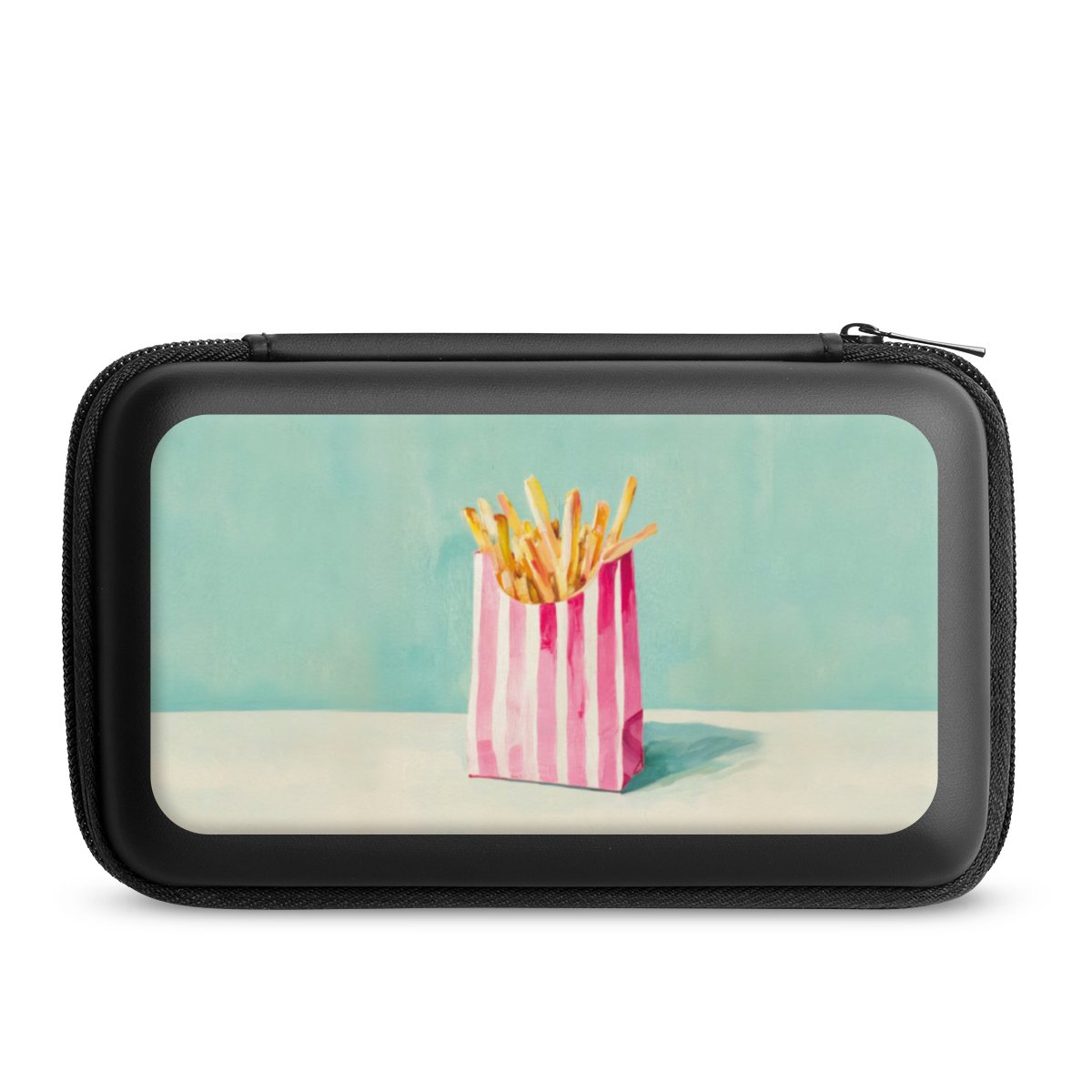 Fishing around for the powerbank in your backpack between crumbs is a thing of the past - with the practical organizer you always have all your technical accessories at hand. Inside there are two sewn-in nets where you can safely store utensils of different sizes and shapes. Travel charger? Fits. Nintendo 3DS and 2DS XL? Fits. Charging cable? Fits. And best of all: You can customize the front with your own photos, sayings or a design from our shop.