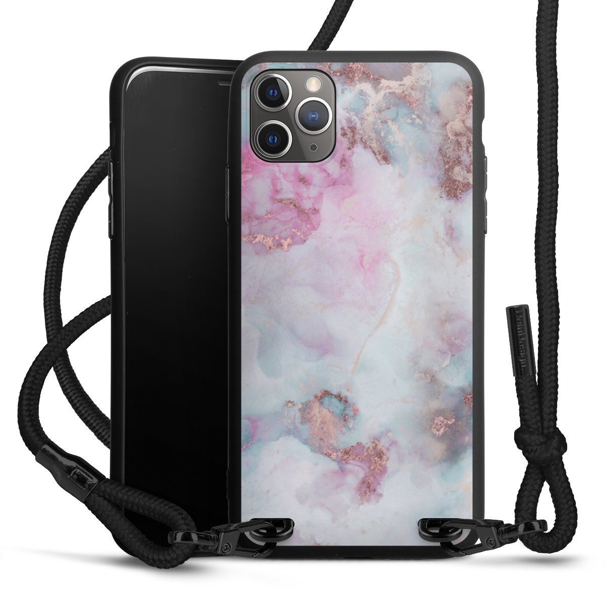 The matt black silicone case is made of flexible TPU (thermoplastic polyurethane) and offers robust protection. The durable, unbreakable material makes the cover flexible and dimensionally stable at the same time. The matte surface makes your design stand out more and is less susceptible to fingerprints and dirt. The stylish trend accessory fits comfortably in the hand and is perfectly complemented by the fabric (polyester) mobile phone strap. The braided fabric strap is approx. 1.70 metres long with a diameter of approx. 0.5 cm. Due to the special knotting technique, the length of the strap can be adjusted by simply pulling it, so that you can adapt it individually to your wishes. The practical case to wear around your neck is available with the fabric strap in black. As a little icing on the cake, we have provided the strap with a chic metal fastener in matt black. The strap is securely fastened to the case with loops made of high-quality genuine leather and press studs. The ends of the fabric strap are covered with metallic end caps and thus protected from fraying.