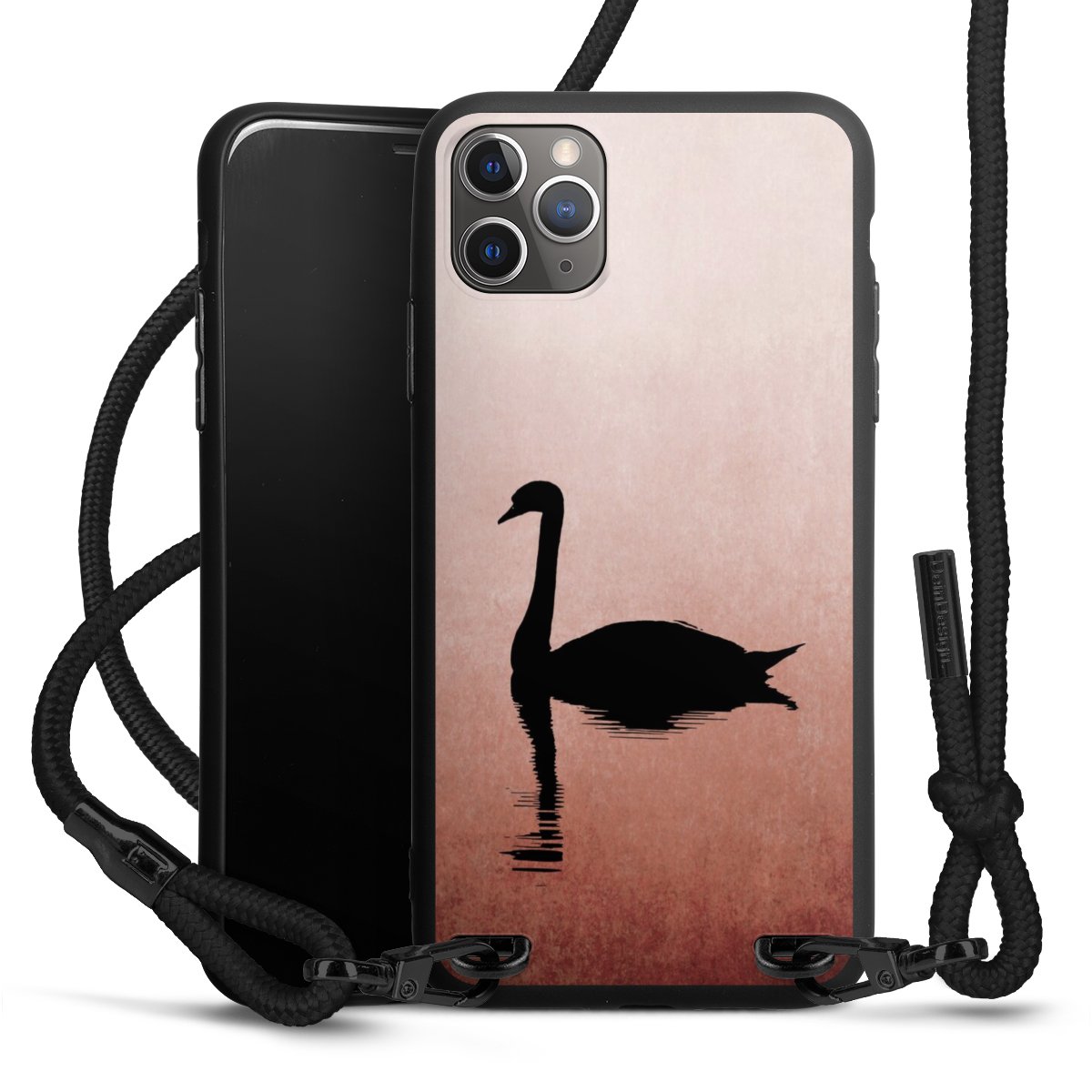 The matt black silicone case is made of flexible TPU (thermoplastic polyurethane) and offers robust protection. The durable, unbreakable material makes the cover flexible and dimensionally stable at the same time. The matte surface makes your design stand out more and is less susceptible to fingerprints and dirt. The stylish trend accessory fits comfortably in the hand and is perfectly complemented by the fabric (polyester) mobile phone strap. The braided fabric strap is approx. 1.70 metres long with a diameter of approx. 0.5 cm. Due to the special knotting technique, the length of the strap can be adjusted by simply pulling it, so that you can adapt it individually to your wishes. The practical case to wear around your neck is available with the fabric strap in black. As a little icing on the cake, we have provided the strap with a chic metal fastener in matt black. The strap is securely fastened to the case with loops made of high-quality genuine leather and press studs. The ends of the fabric strap are covered with metallic end caps and thus protected from fraying.