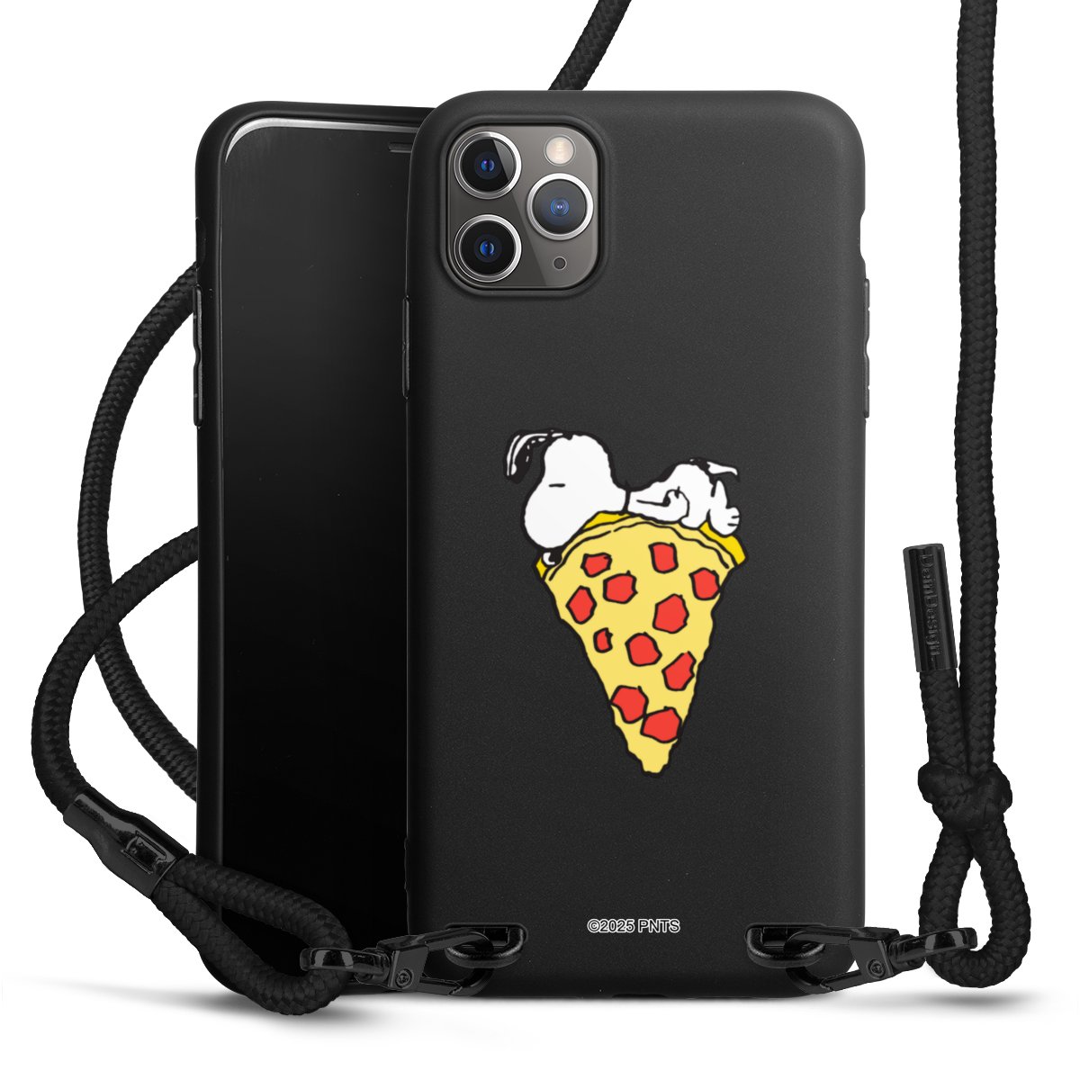 Pure Black: Phone case, fabric strap and metal details in stylish matt black.