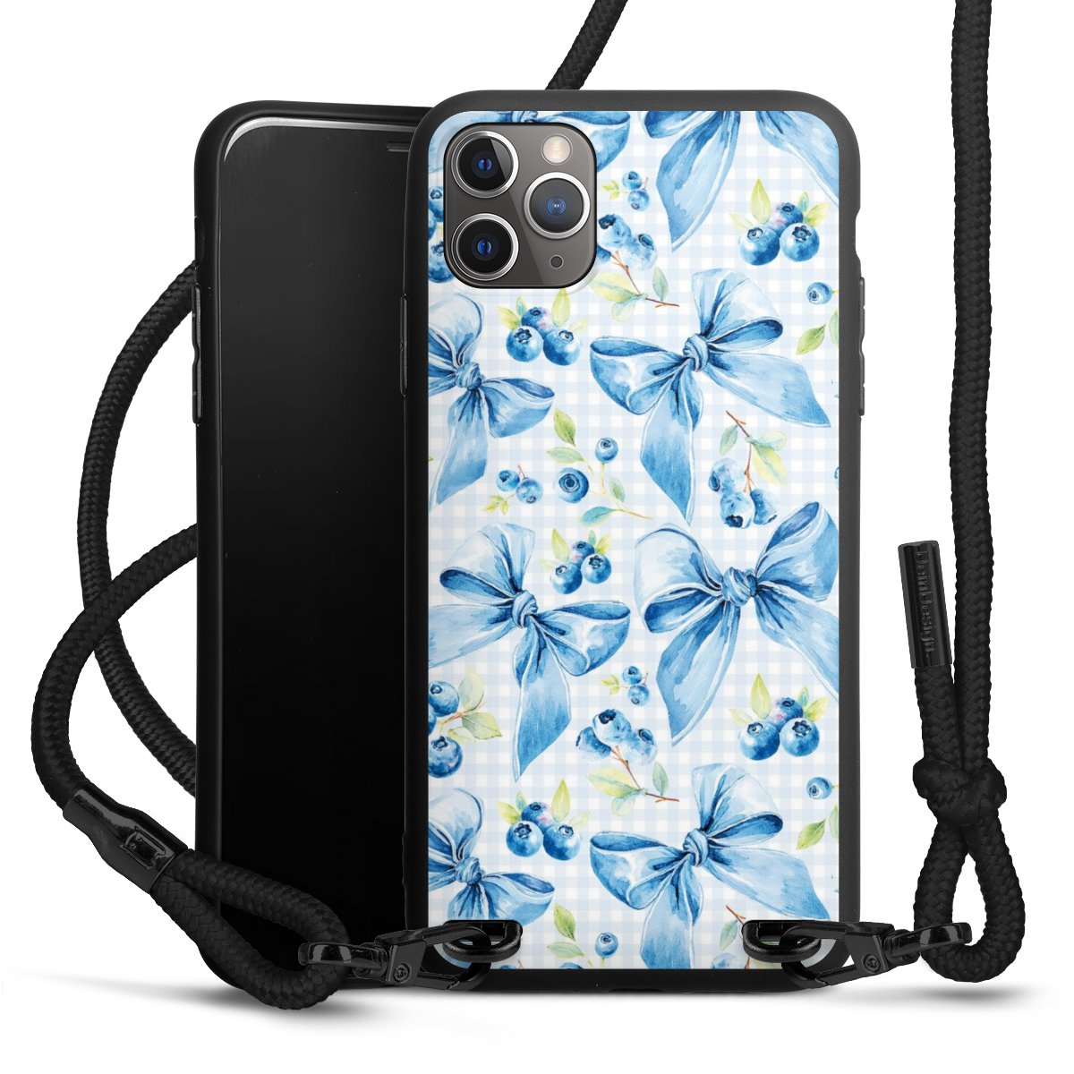 Pure Black: Phone case, fabric strap and metal details in stylish matt black.