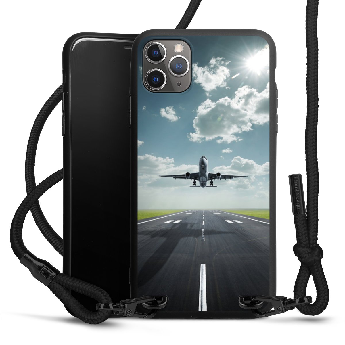 Pure Black: Phone case, fabric strap and metal details in stylish matt black.