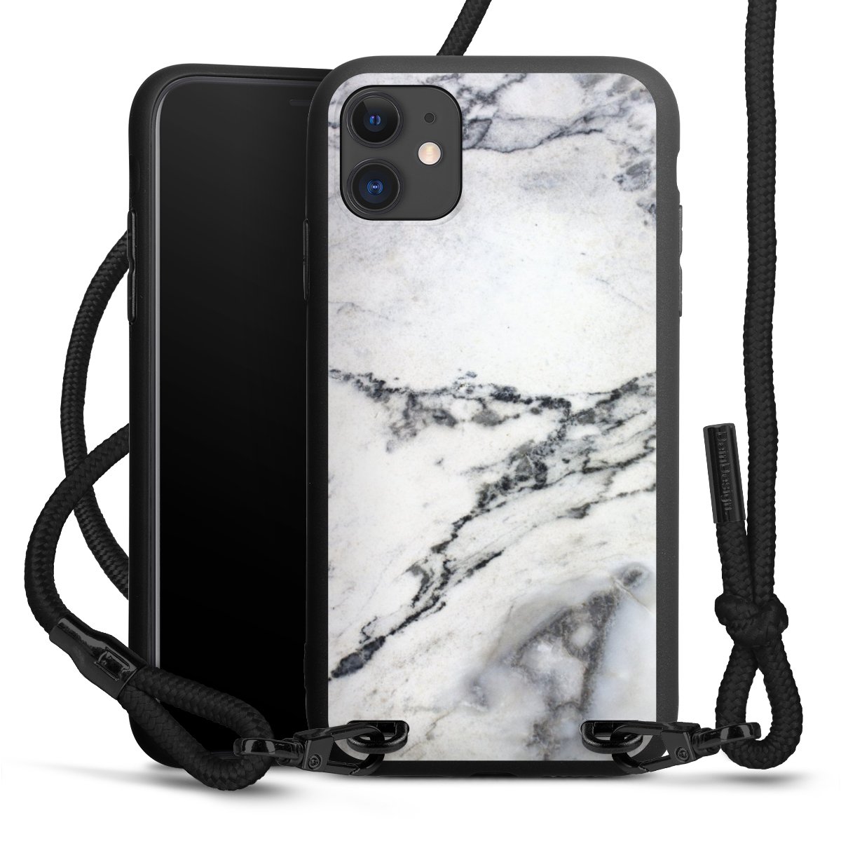 The matt black silicone case is made of flexible TPU (thermoplastic polyurethane) and offers robust protection. The durable, unbreakable material makes the cover flexible and dimensionally stable at the same time. The matte surface makes your design stand out more and is less susceptible to fingerprints and dirt. The stylish trend accessory fits comfortably in the hand and is perfectly complemented by the fabric (polyester) mobile phone strap. The braided fabric strap is approx. 1.70 metres long with a diameter of approx. 0.5 cm. Due to the special knotting technique, the length of the strap can be adjusted by simply pulling it, so that you can adapt it individually to your wishes. The practical case to wear around your neck is available with the fabric strap in black. As a little icing on the cake, we have provided the strap with a chic metal fastener in matt black. The strap is securely fastened to the case with loops made of high-quality genuine leather and press studs. The ends of the fabric strap are covered with metallic end caps and thus protected from fraying.