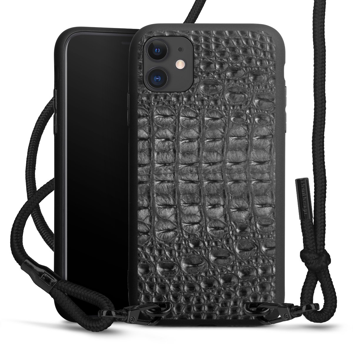 Pure Black: Phone case, fabric strap and metal details in stylish matt black.