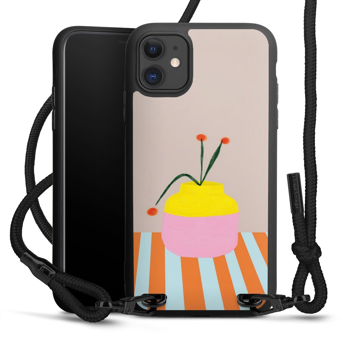 We use the solid direct print process for this phone case, which is why the print area only covers the back and the edge remains unprinted. The case to wear around your neck can be ordered unprinted, fully printed, or partially printed. For your design, either choose one of our exclusive shop motifs or get creative and create your own design, for example with photos and overlays. Design your own personal trend accessory and make an individual statement on the streets!