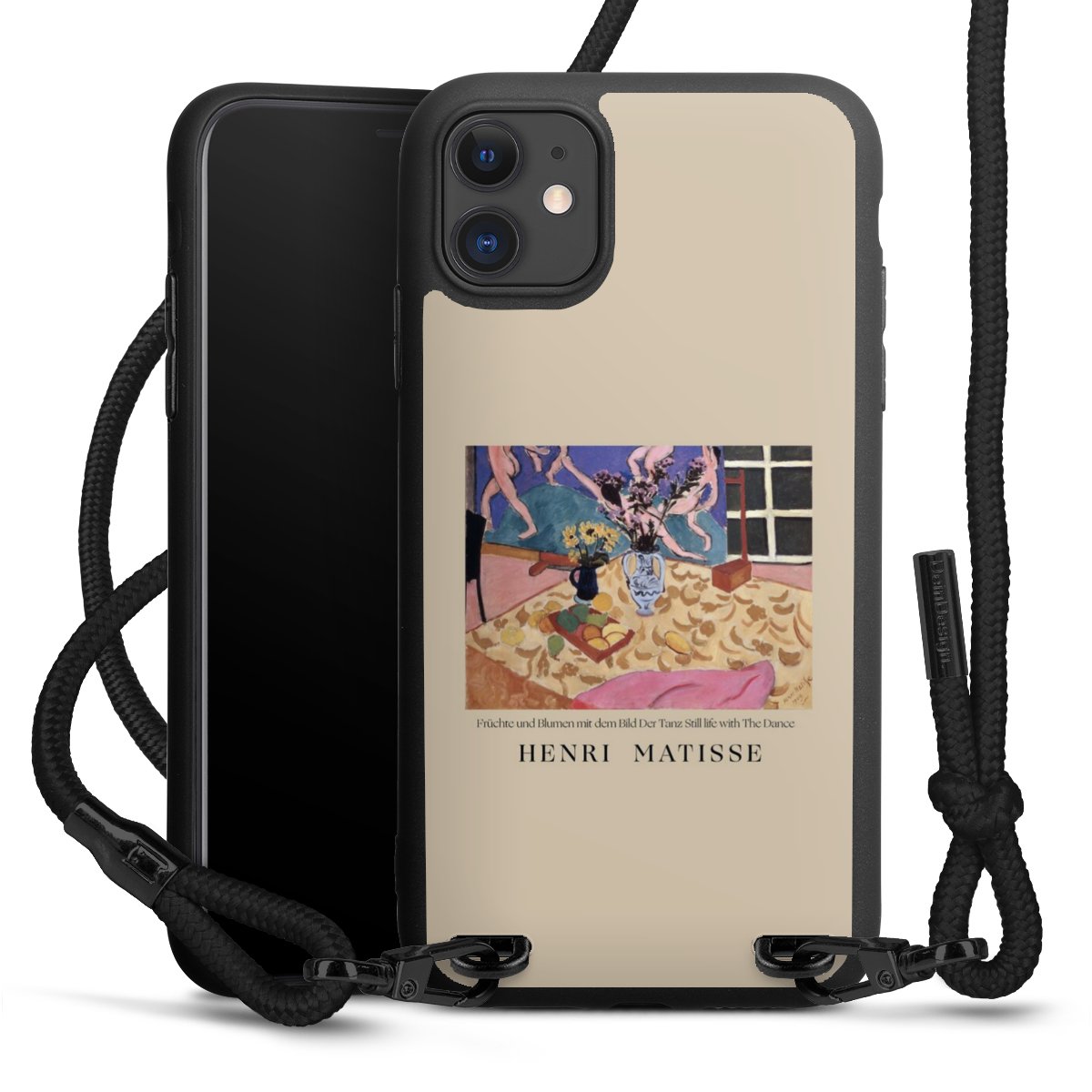 Pure Black: Phone case, fabric strap and metal details in stylish matt black.