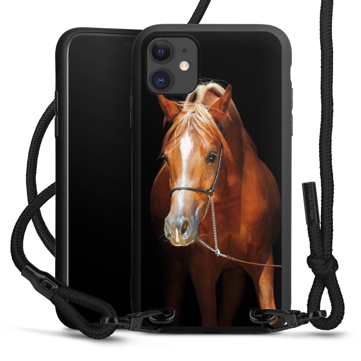 Pure Black: Phone case, fabric strap and metal details in stylish matt black.