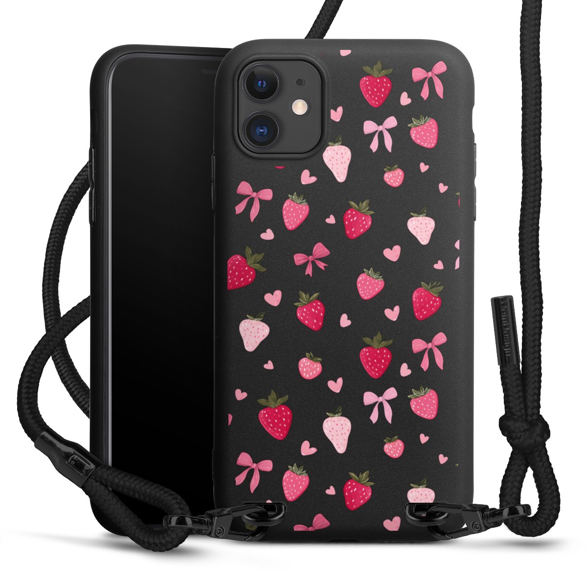 Pure Black: Phone case, fabric strap and metal details in stylish matt black.