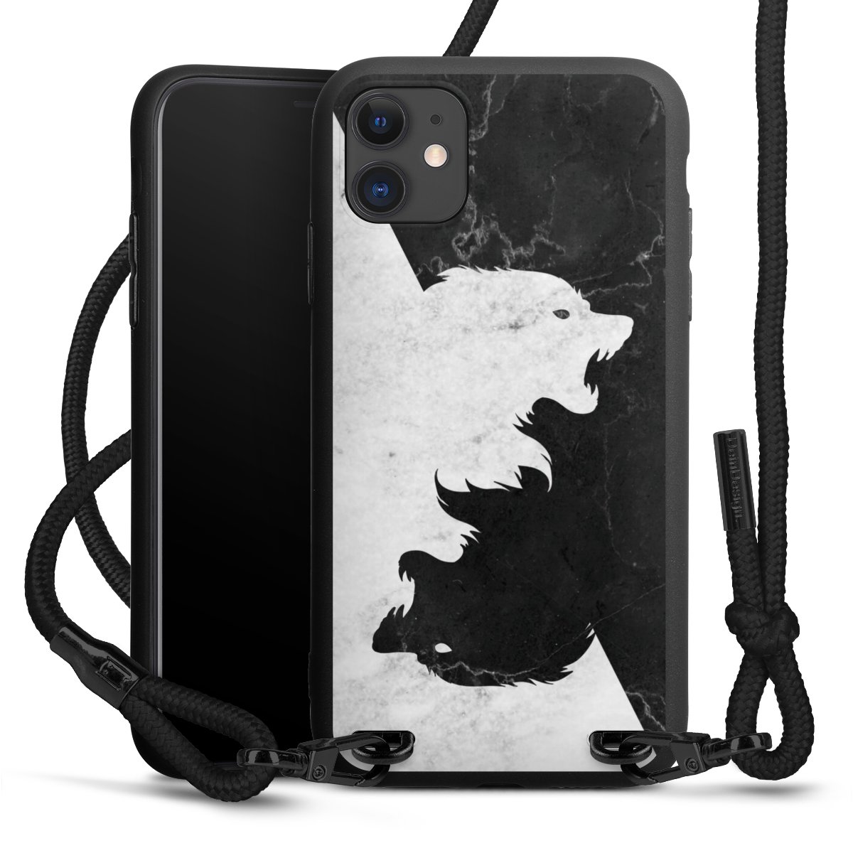 The matt black silicone case is made of flexible TPU (thermoplastic polyurethane) and offers robust protection. The durable, unbreakable material makes the cover flexible and dimensionally stable at the same time. The matte surface makes your design stand out more and is less susceptible to fingerprints and dirt. The stylish trend accessory fits comfortably in the hand and is perfectly complemented by the fabric (polyester) mobile phone strap. The braided fabric strap is approx. 1.70 metres long with a diameter of approx. 0.5 cm. Due to the special knotting technique, the length of the strap can be adjusted by simply pulling it, so that you can adapt it individually to your wishes. The practical case to wear around your neck is available with the fabric strap in black. As a little icing on the cake, we have provided the strap with a chic metal fastener in matt black. The strap is securely fastened to the case with loops made of high-quality genuine leather and press studs. The ends of the fabric strap are covered with metallic end caps and thus protected from fraying.