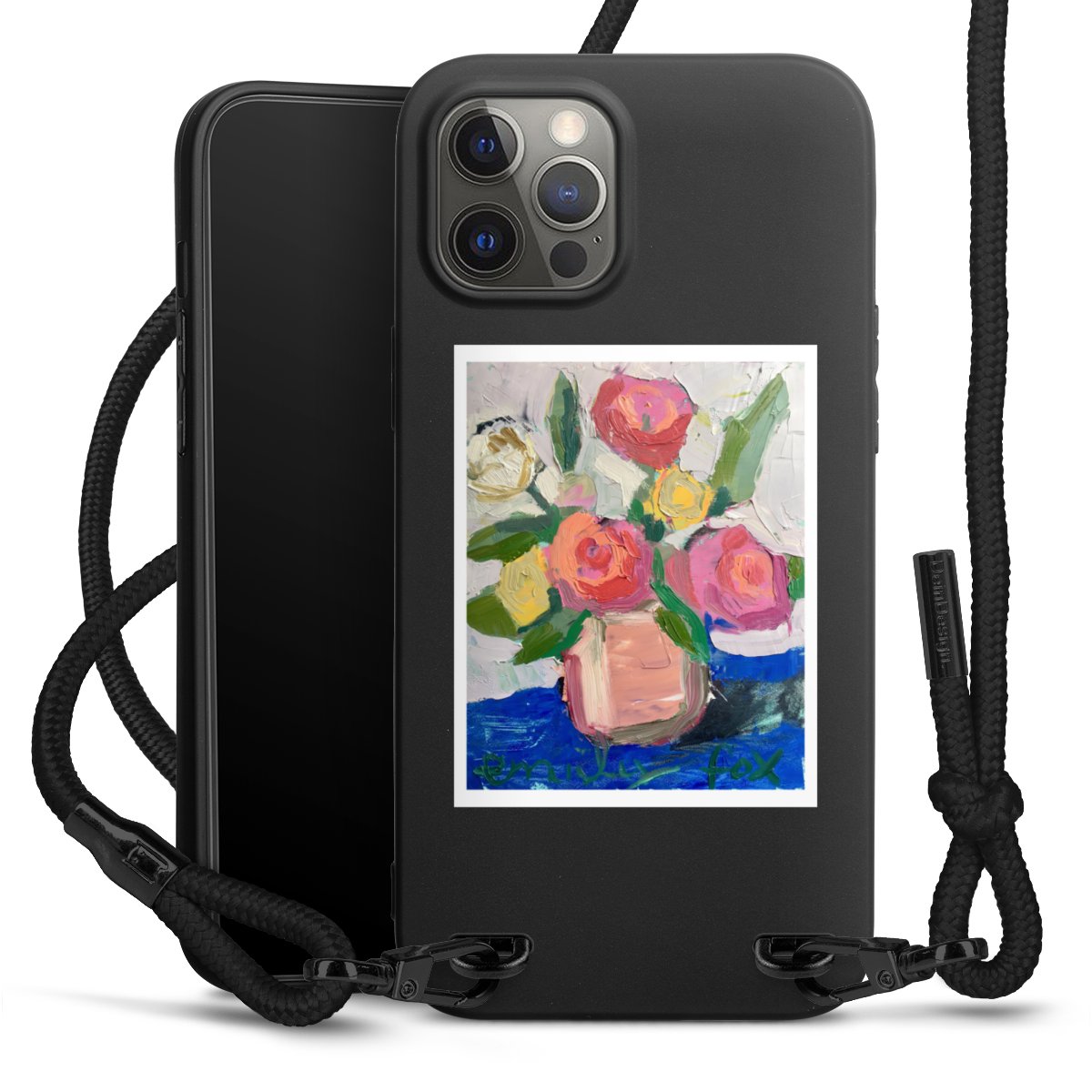 The matt black silicone case is made of flexible TPU (thermoplastic polyurethane) and offers robust protection. The durable, unbreakable material makes the cover flexible and dimensionally stable at the same time. The matte surface makes your design stand out more and is less susceptible to fingerprints and dirt. The stylish trend accessory fits comfortably in the hand and is perfectly complemented by the fabric (polyester) mobile phone strap. The braided fabric strap is approx. 1.70 metres long with a diameter of approx. 0.5 cm. Due to the special knotting technique, the length of the strap can be adjusted by simply pulling it, so that you can adapt it individually to your wishes. The practical case to wear around your neck is available with the fabric strap in black. As a little icing on the cake, we have provided the strap with a chic metal fastener in matt black. The strap is securely fastened to the case with loops made of high-quality genuine leather and press studs. The ends of the fabric strap are covered with metallic end caps and thus protected from fraying.