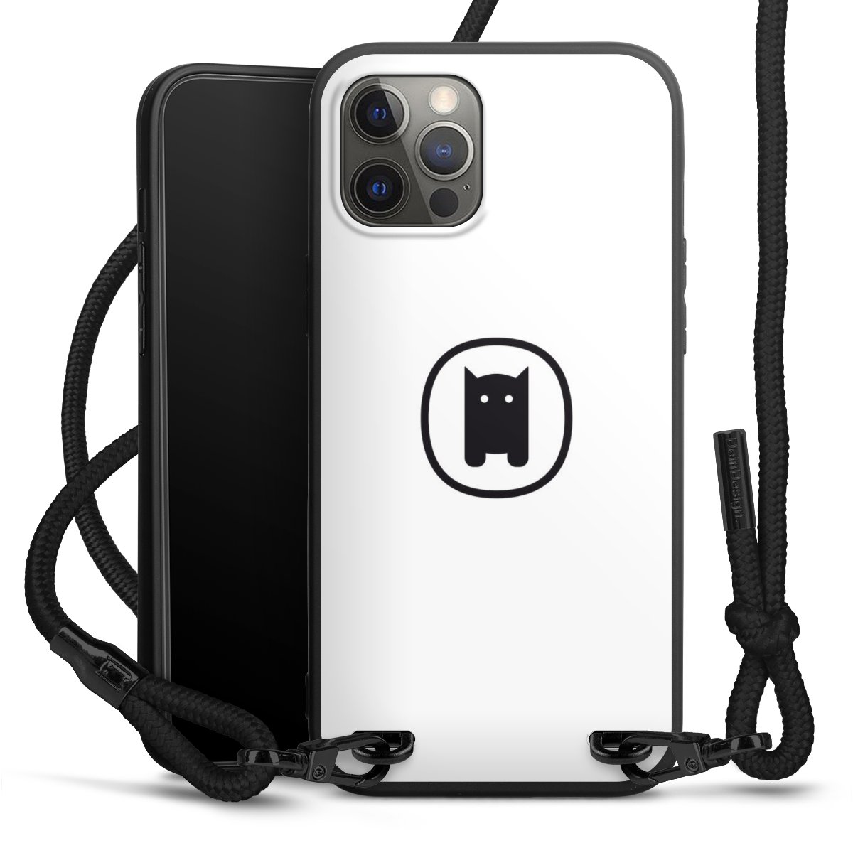 The matt black silicone case is made of flexible TPU (thermoplastic polyurethane) and offers robust protection. The durable, unbreakable material makes the cover flexible and dimensionally stable at the same time. The matte surface makes your design stand out more and is less susceptible to fingerprints and dirt. The stylish trend accessory fits comfortably in the hand and is perfectly complemented by the fabric (polyester) mobile phone strap. The braided fabric strap is approx. 1.70 metres long with a diameter of approx. 0.5 cm. Due to the special knotting technique, the length of the strap can be adjusted by simply pulling it, so that you can adapt it individually to your wishes. The practical case to wear around your neck is available with the fabric strap in black. As a little icing on the cake, we have provided the strap with a chic metal fastener in matt black. The strap is securely fastened to the case with loops made of high-quality genuine leather and press studs. The ends of the fabric strap are covered with metallic end caps and thus protected from fraying.
