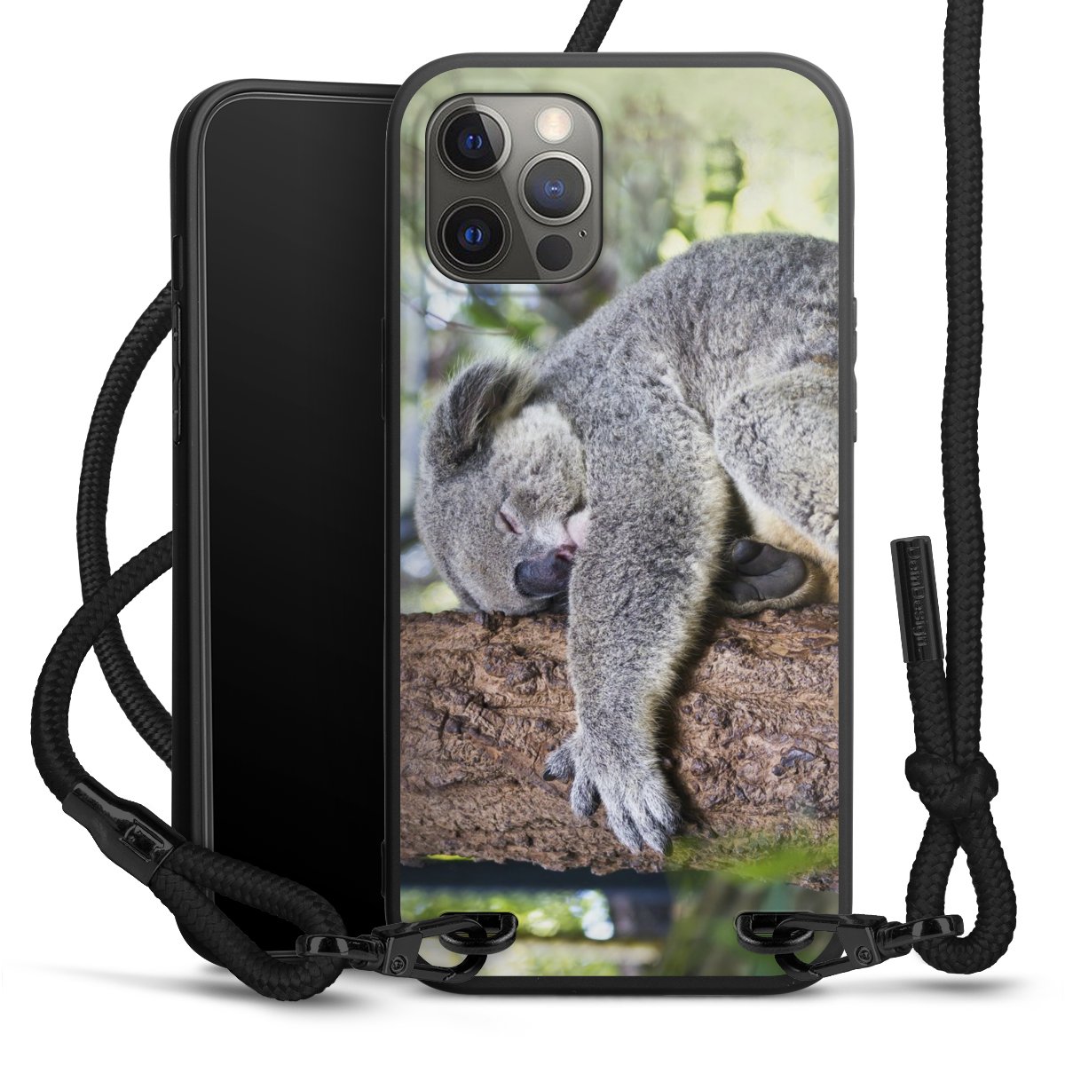 Pure Black: Phone case, fabric strap and metal details in stylish matt black.