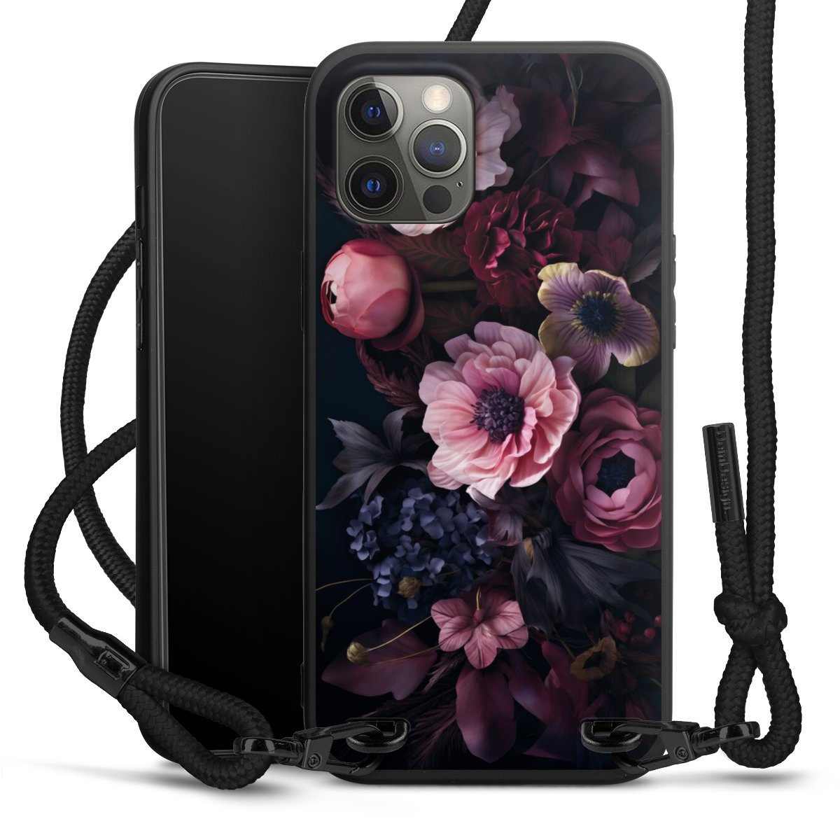 Pure Black: Phone case, fabric strap and metal details in stylish matt black.