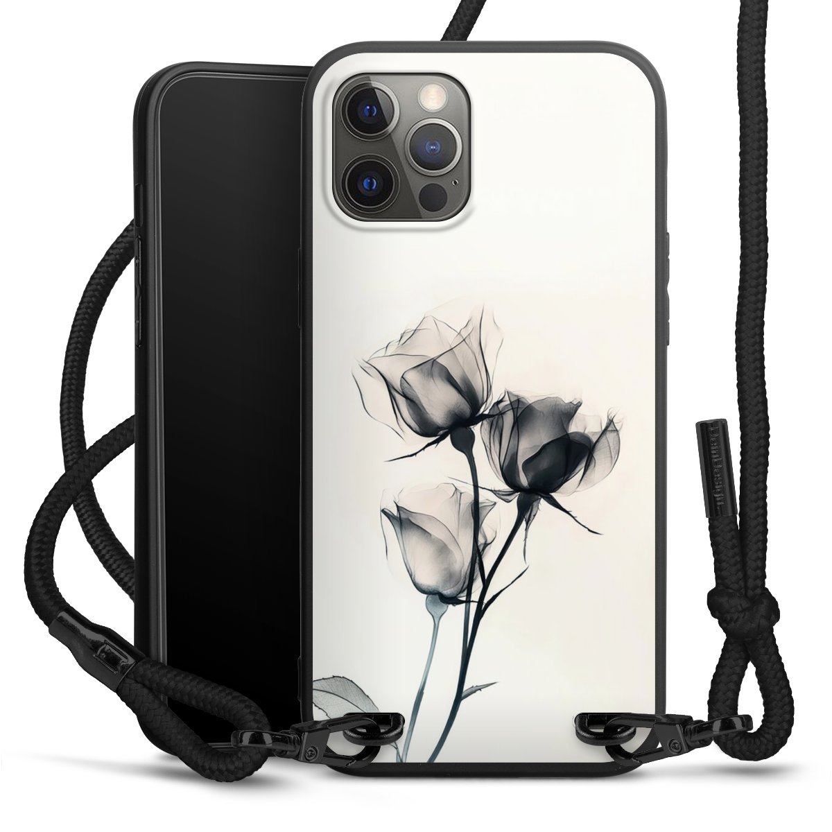 The matt black silicone case is made of flexible TPU (thermoplastic polyurethane) and offers robust protection. The durable, unbreakable material makes the cover flexible and dimensionally stable at the same time. The matte surface makes your design stand out more and is less susceptible to fingerprints and dirt. The stylish trend accessory fits comfortably in the hand and is perfectly complemented by the fabric (polyester) mobile phone strap. The braided fabric strap is approx. 1.70 metres long with a diameter of approx. 0.5 cm. Due to the special knotting technique, the length of the strap can be adjusted by simply pulling it, so that you can adapt it individually to your wishes. The practical case to wear around your neck is available with the fabric strap in black. As a little icing on the cake, we have provided the strap with a chic metal fastener in matt black. The strap is securely fastened to the case with loops made of high-quality genuine leather and press studs. The ends of the fabric strap are covered with metallic end caps and thus protected from fraying.