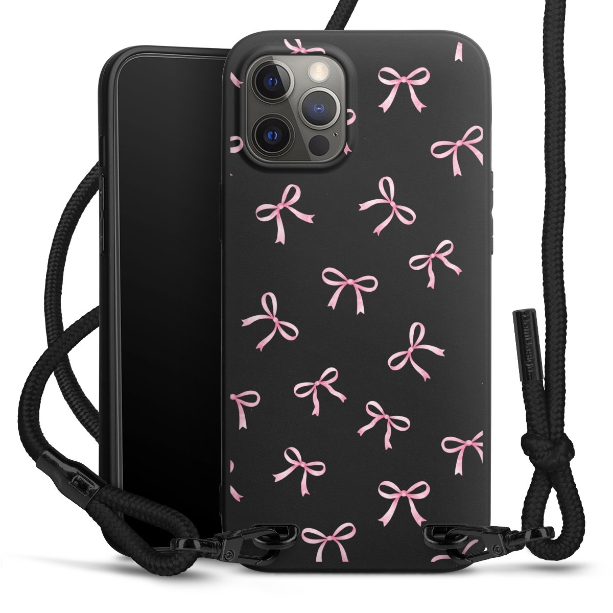 Pure Black: Phone case, fabric strap and metal details in stylish matt black.