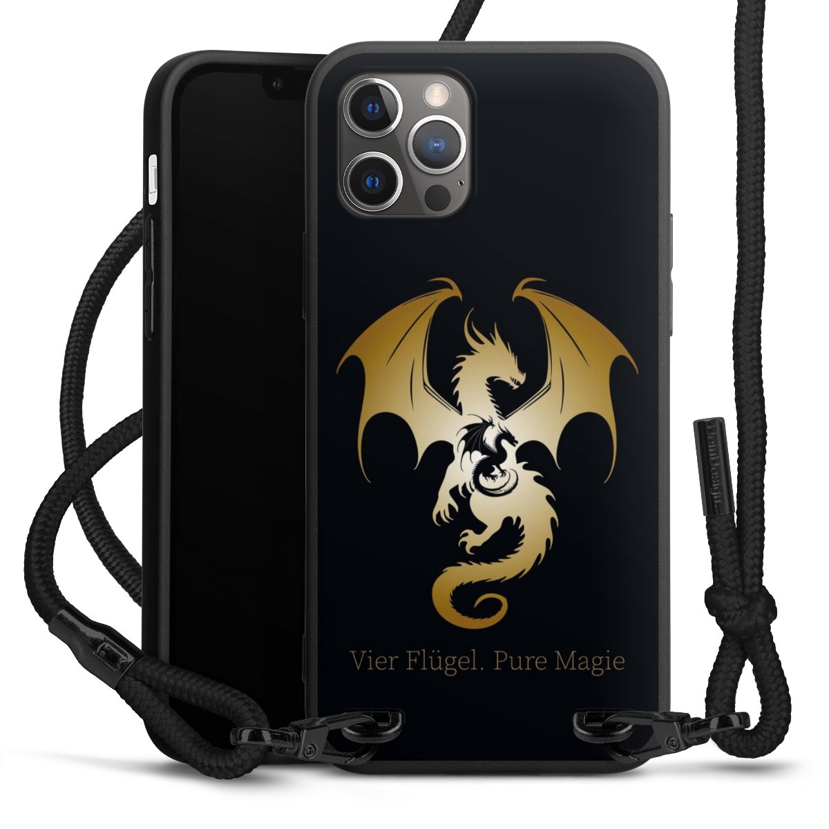 Pure Black: Phone case, fabric strap and metal details in stylish matt black.