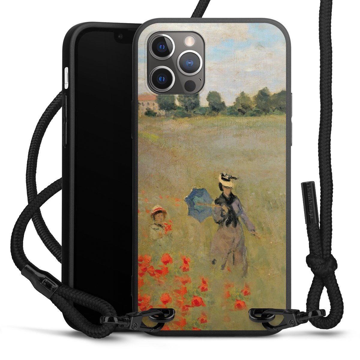 Pure Black: Phone case, fabric strap and metal details in stylish matt black.