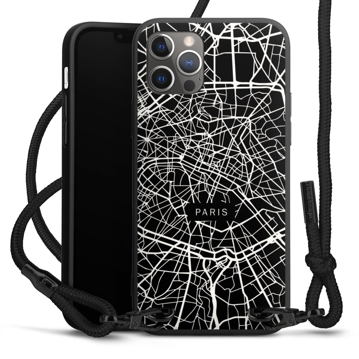 The matt black silicone case is made of flexible TPU (thermoplastic polyurethane) and offers robust protection. The durable, unbreakable material makes the cover flexible and dimensionally stable at the same time. The matte surface makes your design stand out more and is less susceptible to fingerprints and dirt. The stylish trend accessory fits comfortably in the hand and is perfectly complemented by the fabric (polyester) mobile phone strap. The braided fabric strap is approx. 1.70 metres long with a diameter of approx. 0.5 cm. Due to the special knotting technique, the length of the strap can be adjusted by simply pulling it, so that you can adapt it individually to your wishes. The practical case to wear around your neck is available with the fabric strap in black. As a little icing on the cake, we have provided the strap with a chic metal fastener in matt black. The strap is securely fastened to the case with loops made of high-quality genuine leather and press studs. The ends of the fabric strap are covered with metallic end caps and thus protected from fraying.