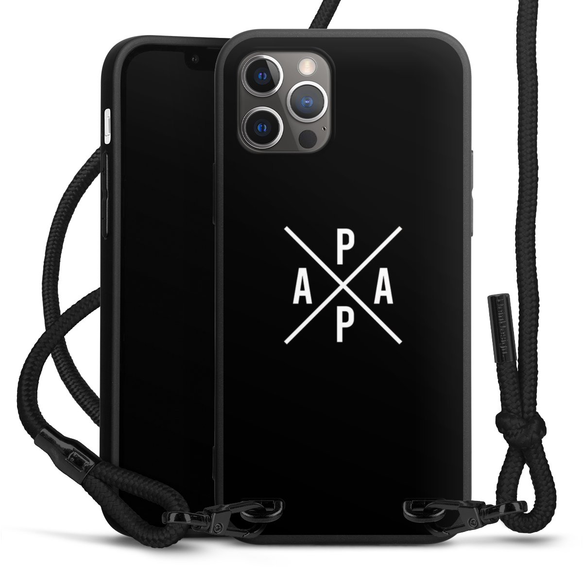 The matt black silicone case is made of flexible TPU (thermoplastic polyurethane) and offers robust protection. The durable, unbreakable material makes the cover flexible and dimensionally stable at the same time. The matte surface makes your design stand out more and is less susceptible to fingerprints and dirt. The stylish trend accessory fits comfortably in the hand and is perfectly complemented by the fabric (polyester) mobile phone strap. The braided fabric strap is approx. 1.70 metres long with a diameter of approx. 0.5 cm. Due to the special knotting technique, the length of the strap can be adjusted by simply pulling it, so that you can adapt it individually to your wishes. The practical case to wear around your neck is available with the fabric strap in black. As a little icing on the cake, we have provided the strap with a chic metal fastener in matt black. The strap is securely fastened to the case with loops made of high-quality genuine leather and press studs. The ends of the fabric strap are covered with metallic end caps and thus protected from fraying.