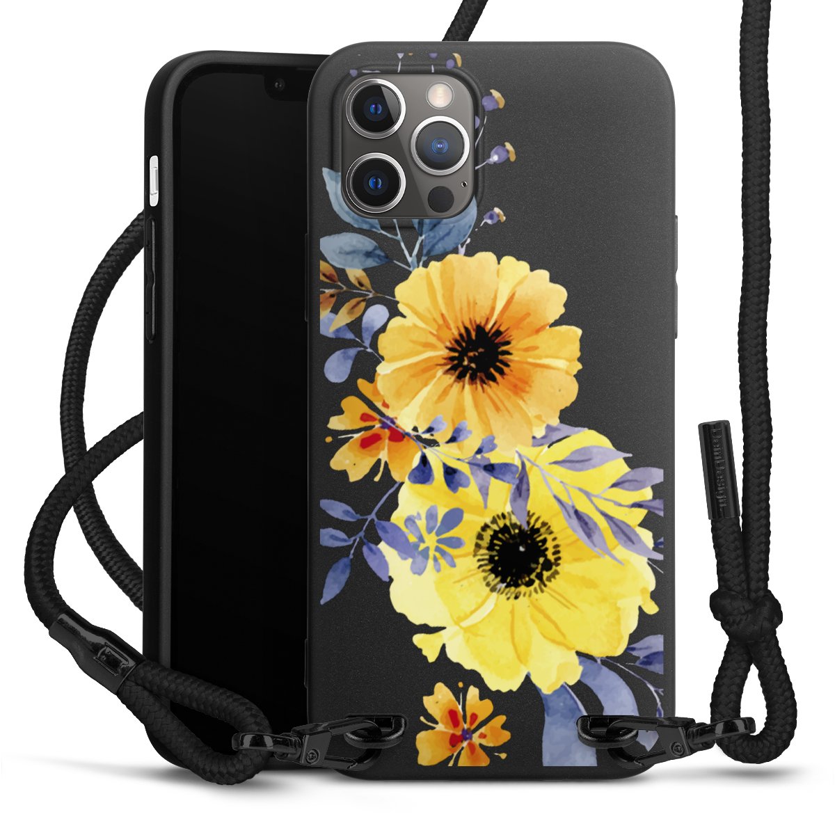 The matt black silicone case is made of flexible TPU (thermoplastic polyurethane) and offers robust protection. The durable, unbreakable material makes the cover flexible and dimensionally stable at the same time. The matte surface makes your design stand out more and is less susceptible to fingerprints and dirt. The stylish trend accessory fits comfortably in the hand and is perfectly complemented by the fabric (polyester) mobile phone strap. The braided fabric strap is approx. 1.70 metres long with a diameter of approx. 0.5 cm. Due to the special knotting technique, the length of the strap can be adjusted by simply pulling it, so that you can adapt it individually to your wishes. The practical case to wear around your neck is available with the fabric strap in black. As a little icing on the cake, we have provided the strap with a chic metal fastener in matt black. The strap is securely fastened to the case with loops made of high-quality genuine leather and press studs. The ends of the fabric strap are covered with metallic end caps and thus protected from fraying.