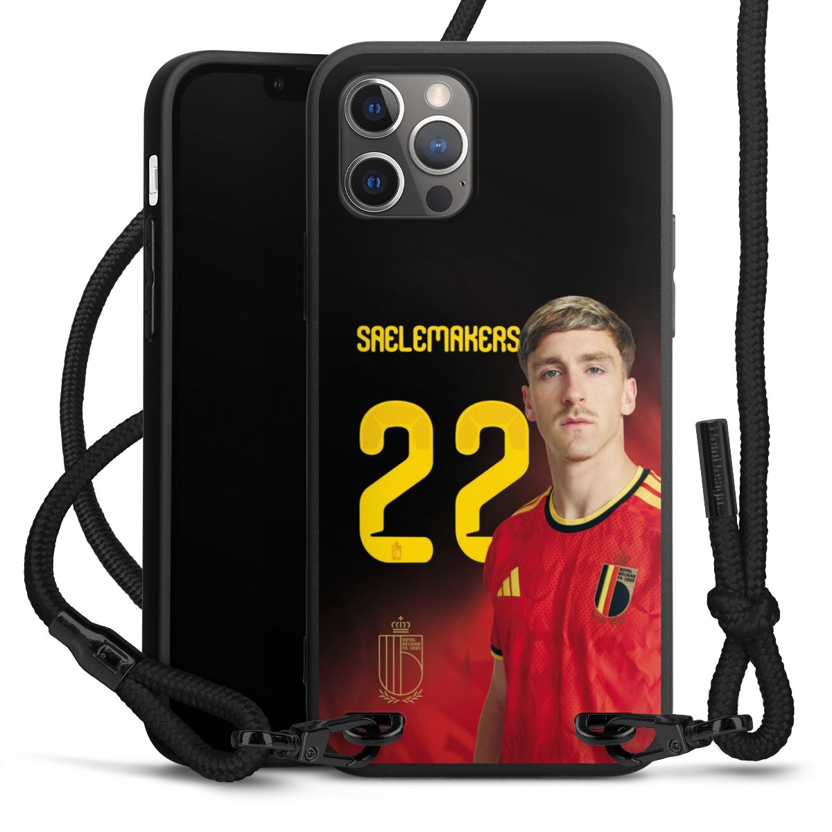 The matt black silicone case is made of flexible TPU (thermoplastic polyurethane) and offers robust protection. The durable, unbreakable material makes the cover flexible and dimensionally stable at the same time. The matte surface makes your design stand out more and is less susceptible to fingerprints and dirt. The stylish trend accessory fits comfortably in the hand and is perfectly complemented by the fabric (polyester) mobile phone strap. The braided fabric strap is approx. 1.70 metres long with a diameter of approx. 0.5 cm. Due to the special knotting technique, the length of the strap can be adjusted by simply pulling it, so that you can adapt it individually to your wishes. The practical case to wear around your neck is available with the fabric strap in black. As a little icing on the cake, we have provided the strap with a chic metal fastener in matt black. The strap is securely fastened to the case with loops made of high-quality genuine leather and press studs. The ends of the fabric strap are covered with metallic end caps and thus protected from fraying.