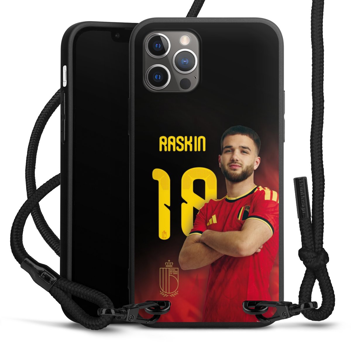 The matt black silicone case is made of flexible TPU (thermoplastic polyurethane) and offers robust protection. The durable, unbreakable material makes the cover flexible and dimensionally stable at the same time. The matte surface makes your design stand out more and is less susceptible to fingerprints and dirt. The stylish trend accessory fits comfortably in the hand and is perfectly complemented by the fabric (polyester) mobile phone strap. The braided fabric strap is approx. 1.70 metres long with a diameter of approx. 0.5 cm. Due to the special knotting technique, the length of the strap can be adjusted by simply pulling it, so that you can adapt it individually to your wishes. The practical case to wear around your neck is available with the fabric strap in black. As a little icing on the cake, we have provided the strap with a chic metal fastener in matt black. The strap is securely fastened to the case with loops made of high-quality genuine leather and press studs. The ends of the fabric strap are covered with metallic end caps and thus protected from fraying.