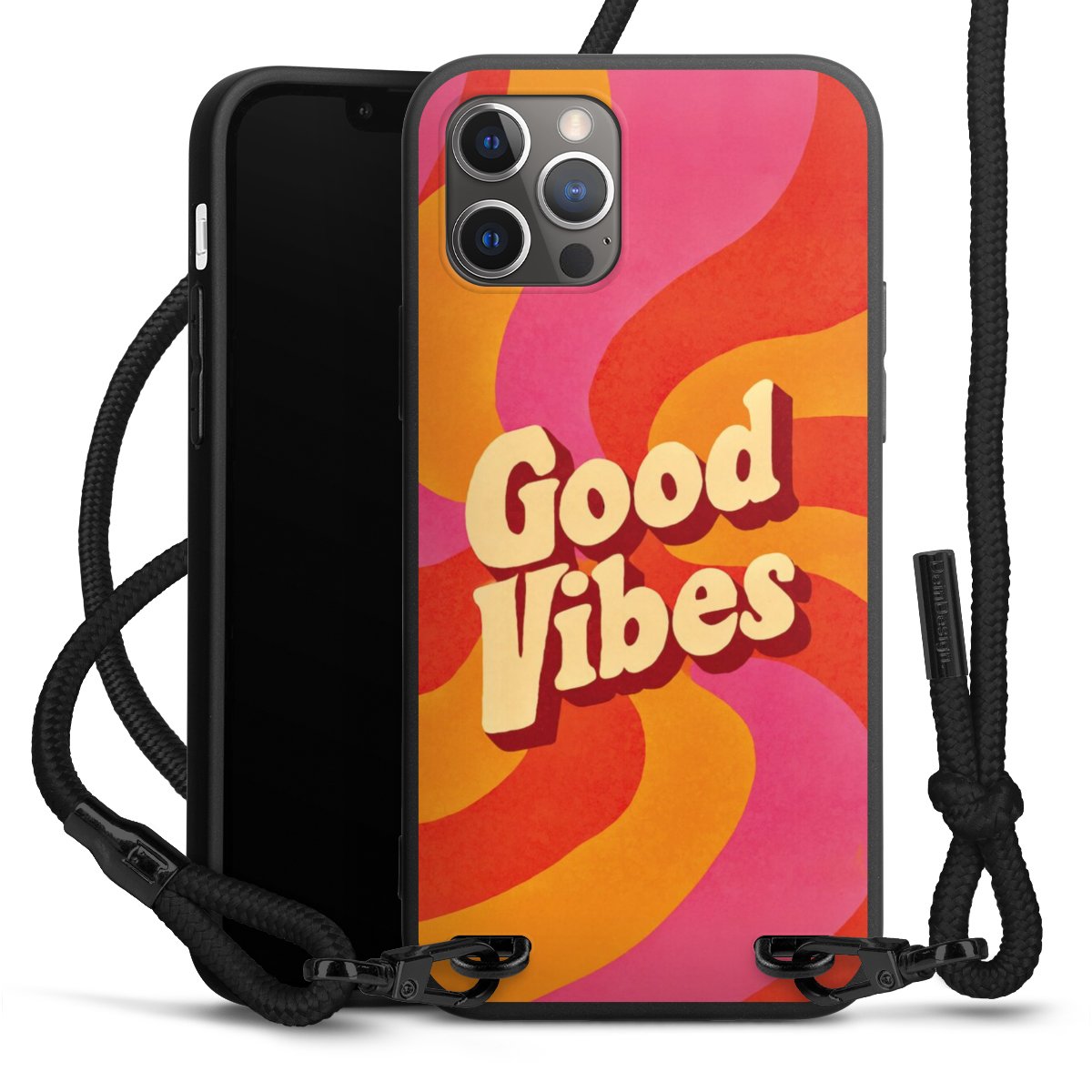 We use the solid direct print process for this phone case, which is why the print area only covers the back and the edge remains unprinted. The case to wear around your neck can be ordered unprinted, fully printed, or partially printed. For your design, either choose one of our exclusive shop motifs or get creative and create your own design, for example with photos and overlays. Design your own personal trend accessory and make an individual statement on the streets!