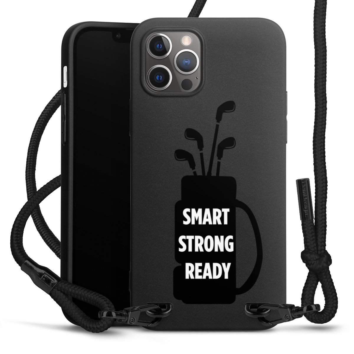 Pure Black: Phone case, fabric strap and metal details in stylish matt black.
