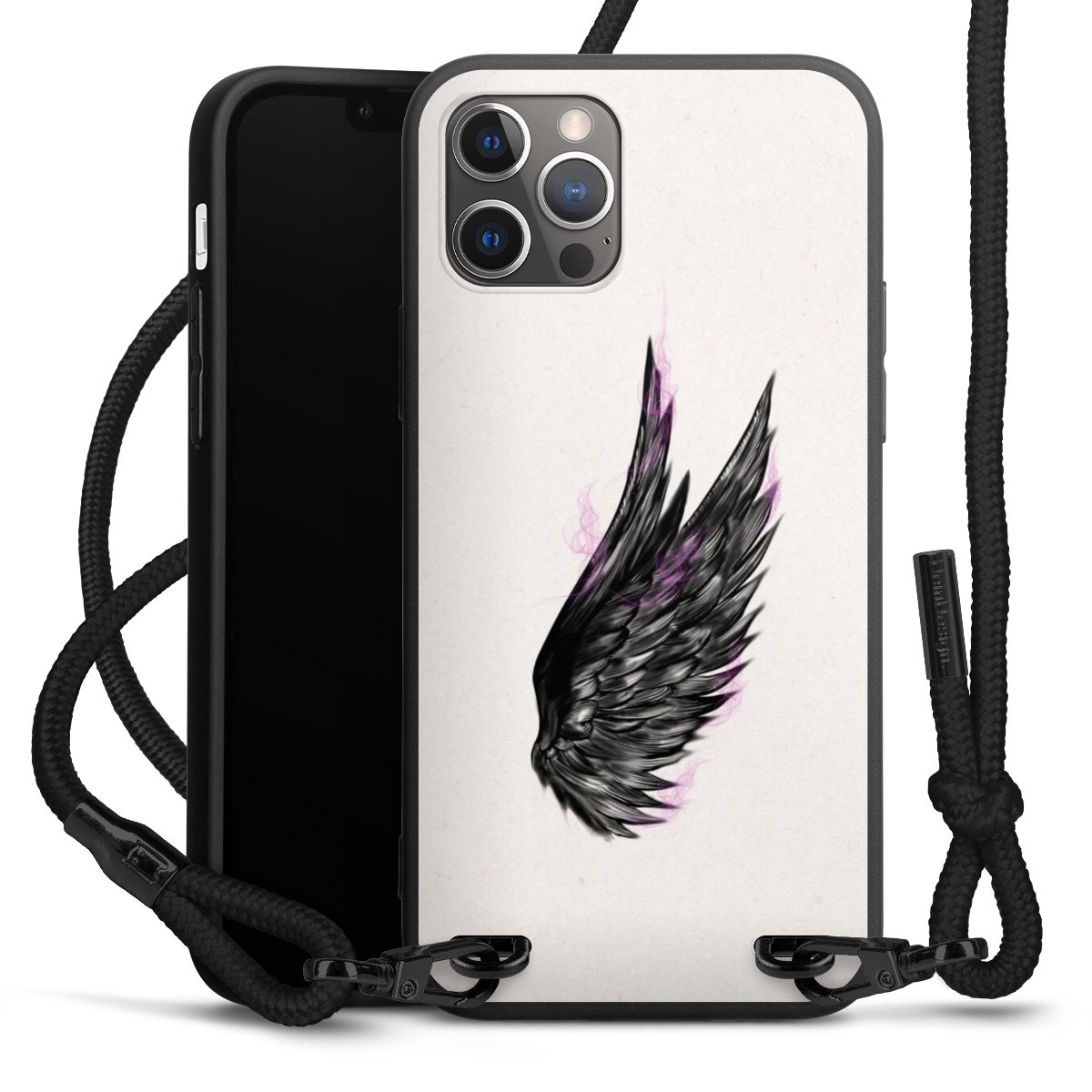 Pure Black: Phone case, fabric strap and metal details in stylish matt black.