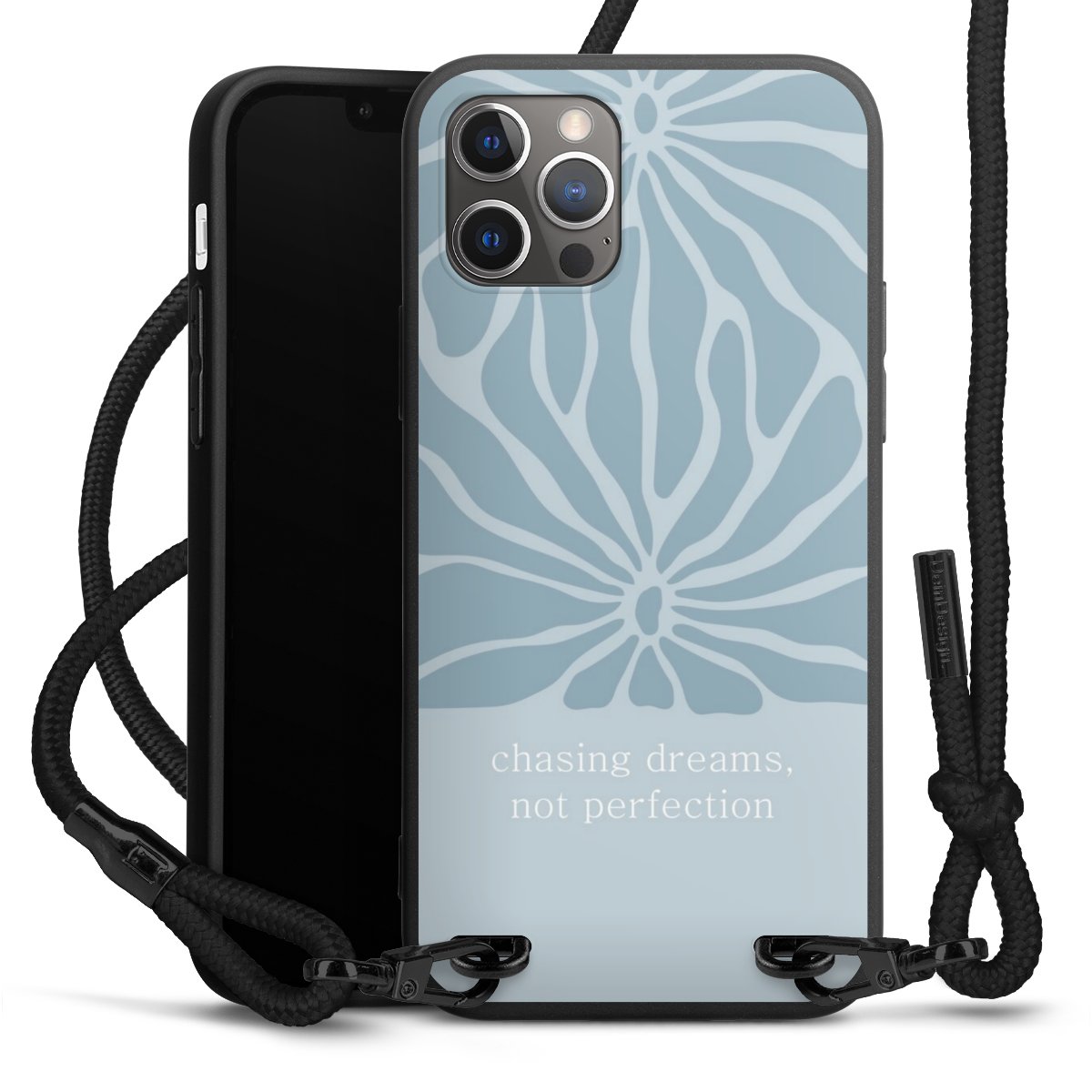 We use the solid direct print process for this phone case, which is why the print area only covers the back and the edge remains unprinted. The case to wear around your neck can be ordered unprinted, fully printed, or partially printed. For your design, either choose one of our exclusive shop motifs or get creative and create your own design, for example with photos and overlays. Design your own personal trend accessory and make an individual statement on the streets!