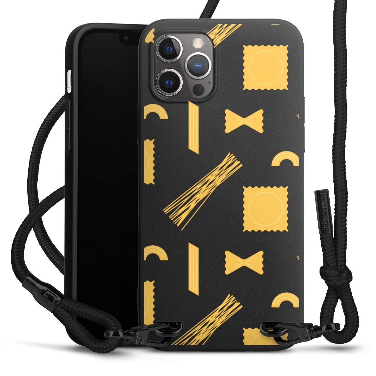 Pure Black: Phone case, fabric strap and metal details in stylish matt black.
