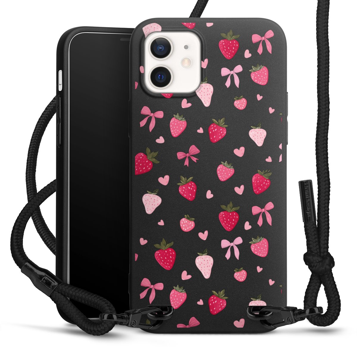 Pure Black: Phone case, fabric strap and metal details in stylish matt black.