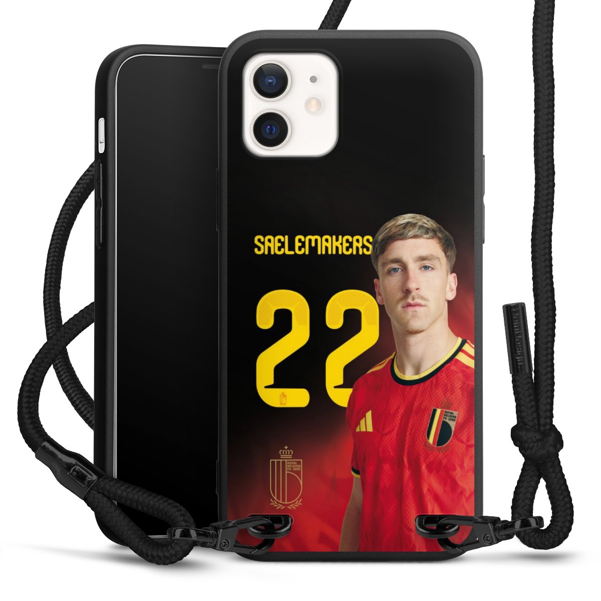The matt black silicone case is made of flexible TPU (thermoplastic polyurethane) and offers robust protection. The durable, unbreakable material makes the cover flexible and dimensionally stable at the same time. The matte surface makes your design stand out more and is less susceptible to fingerprints and dirt. The stylish trend accessory fits comfortably in the hand and is perfectly complemented by the fabric (polyester) mobile phone strap. The braided fabric strap is approx. 1.70 metres long with a diameter of approx. 0.5 cm. Due to the special knotting technique, the length of the strap can be adjusted by simply pulling it, so that you can adapt it individually to your wishes. The practical case to wear around your neck is available with the fabric strap in black. As a little icing on the cake, we have provided the strap with a chic metal fastener in matt black. The strap is securely fastened to the case with loops made of high-quality genuine leather and press studs. The ends of the fabric strap are covered with metallic end caps and thus protected from fraying.